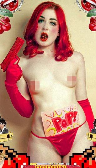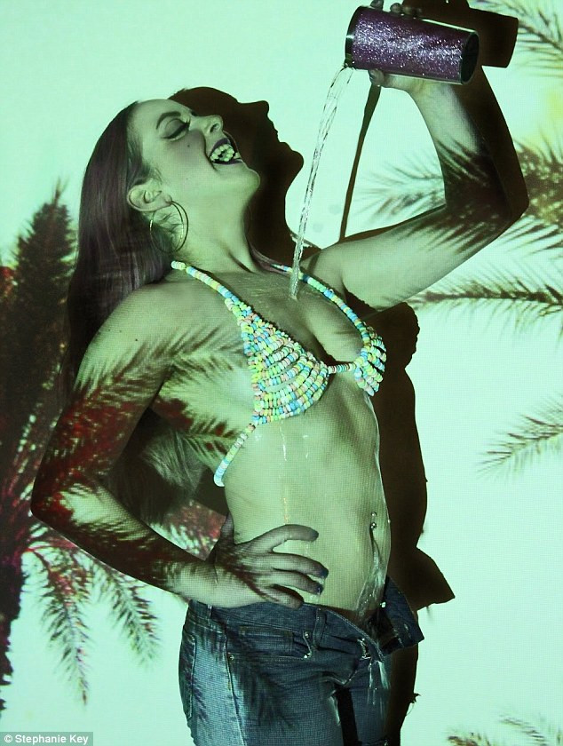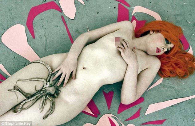 Fotografiile, in care tanara apare goala, sunt destul de ciudate, ea pozand alaturi de o sepie sau de mancare fast-food.