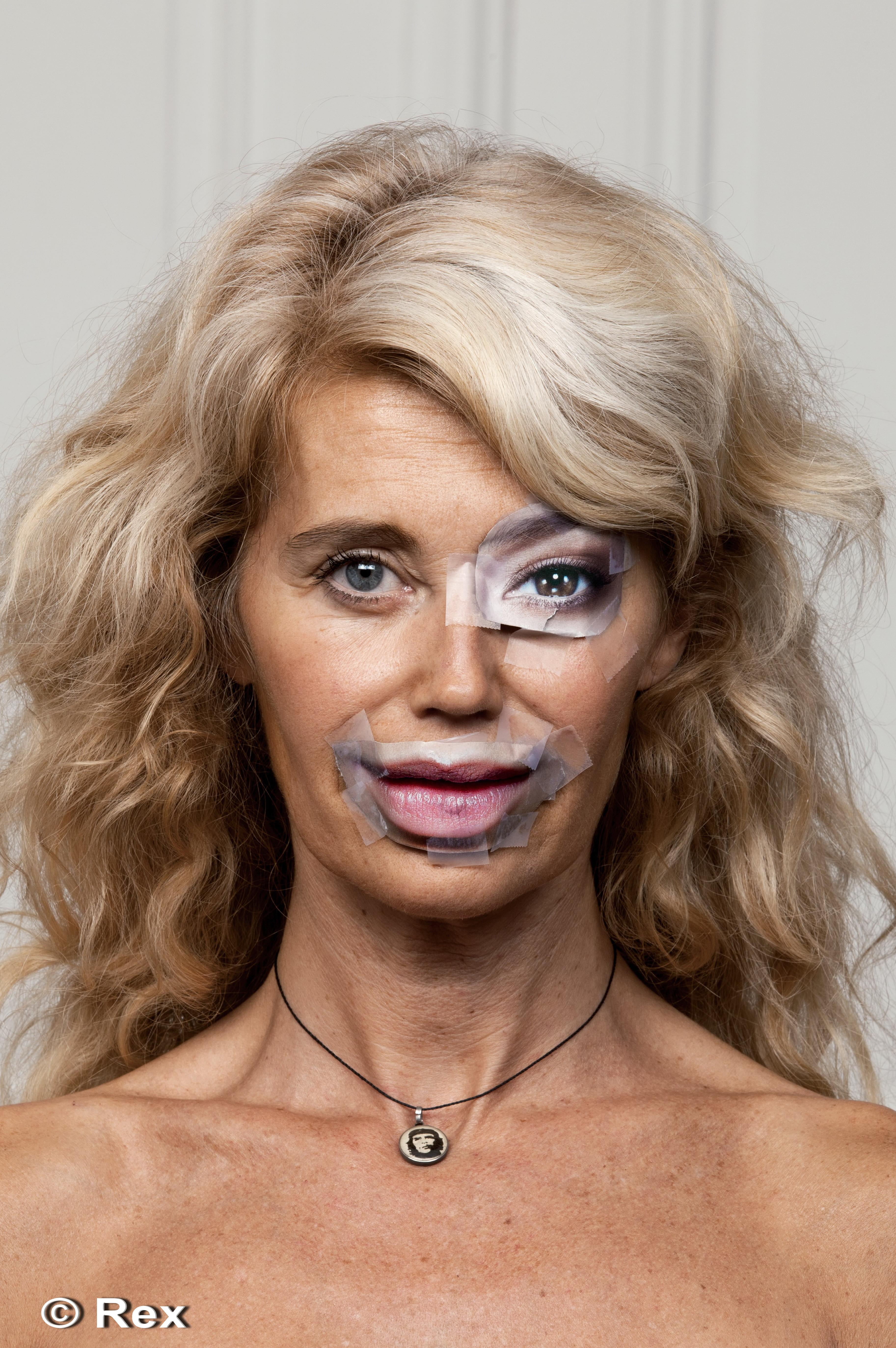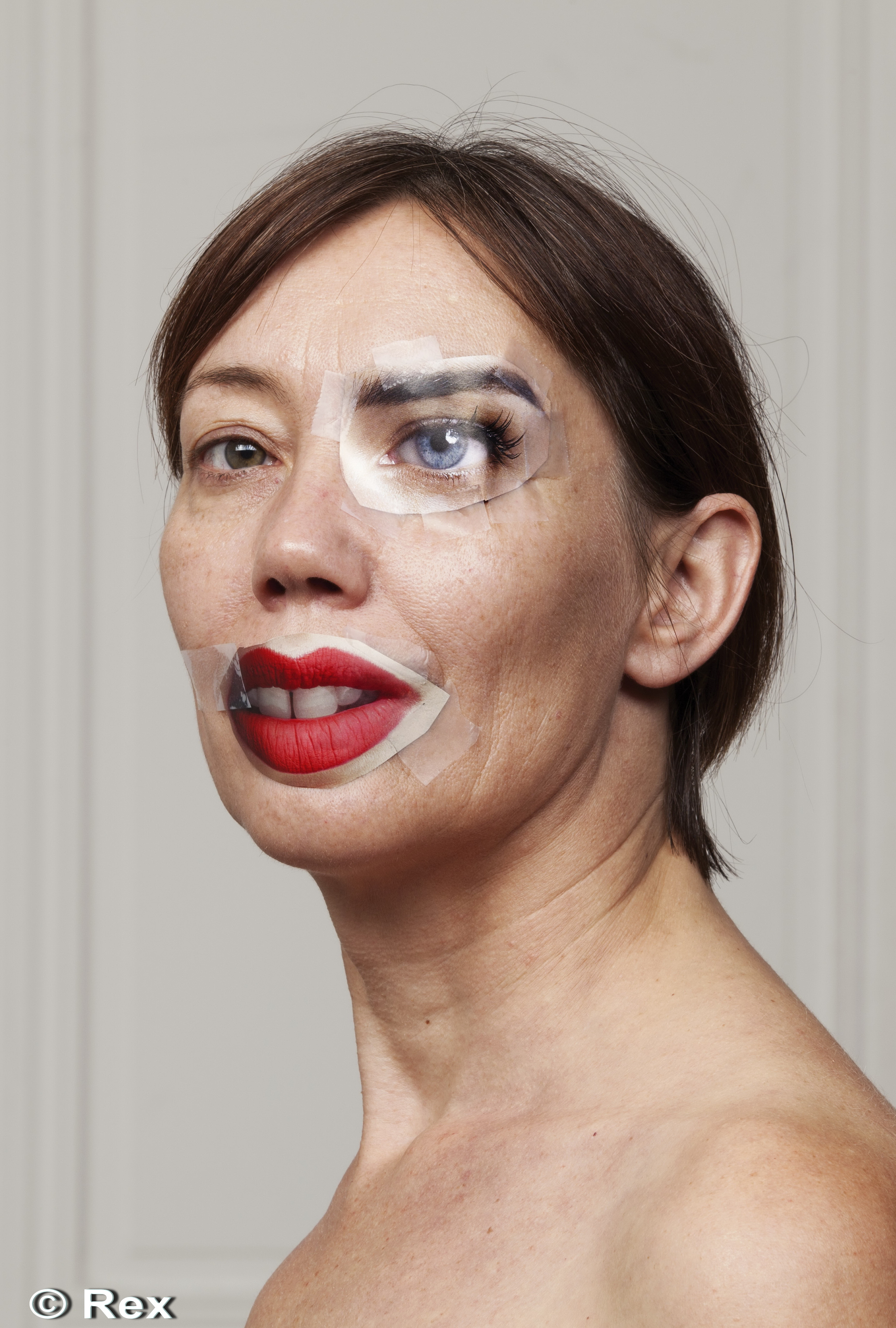 Portretele, desprinse parca din filmele horror, dau senzatia ca personajele sunt victimele unor accidente bizare. In realitate, modelelor li s-a aplicat pe ochi, gura, obraji sau nas taieturi din reviste si ziare.