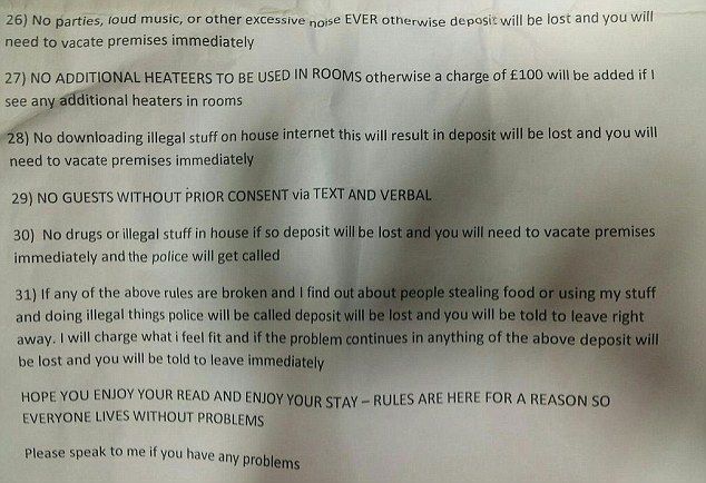 - nu aveti voie sa organizati petreceri sau sa faceti zgomot, altfel va dau afara