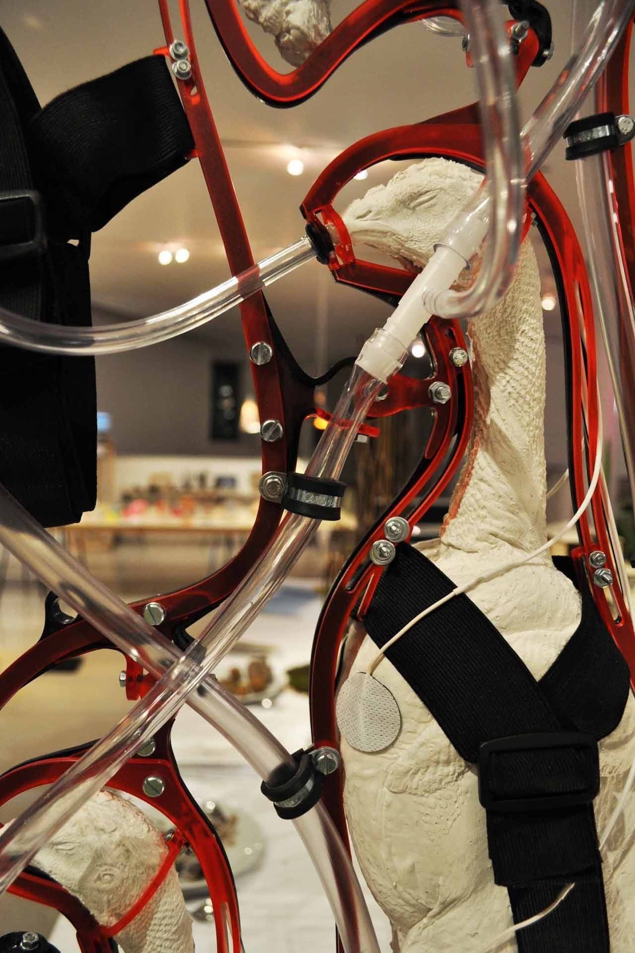 Ford explica faptul ca "Atata timp cat celulele stem din creier sunt active, functiile homeostatice (functionarea organelor vitale) ale puilor vor continua sa fie indeplinite. Indepartand insa cortexul puilor, dar senzorii de perceptie vor fi eliminati. Astfel ca pasarile nu vor mai simti in niciun fel stresul cresterii in conditii rele, dar in acelasi timp vor fi fiinte vii, care se vor dezvolta normal. Grearele vor fi deasemenea inlaturate, pentru ca puii sa incapa in "matricele" construite".
