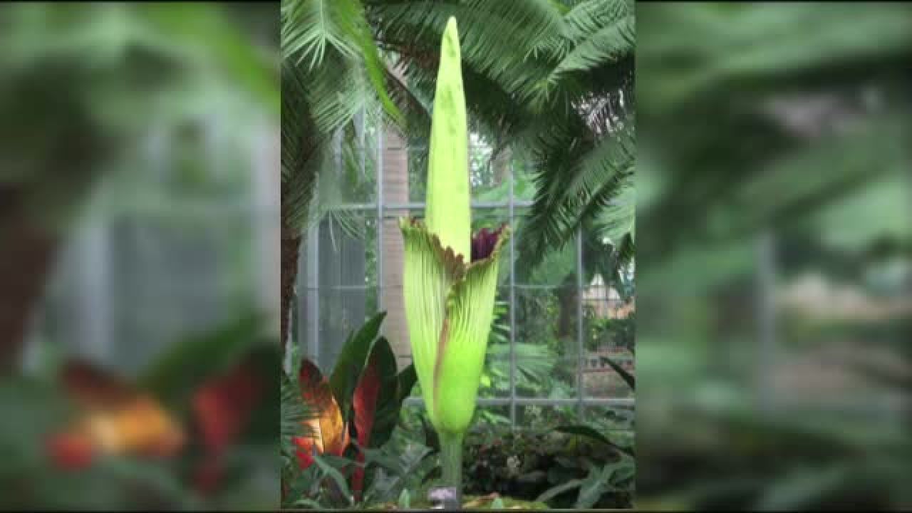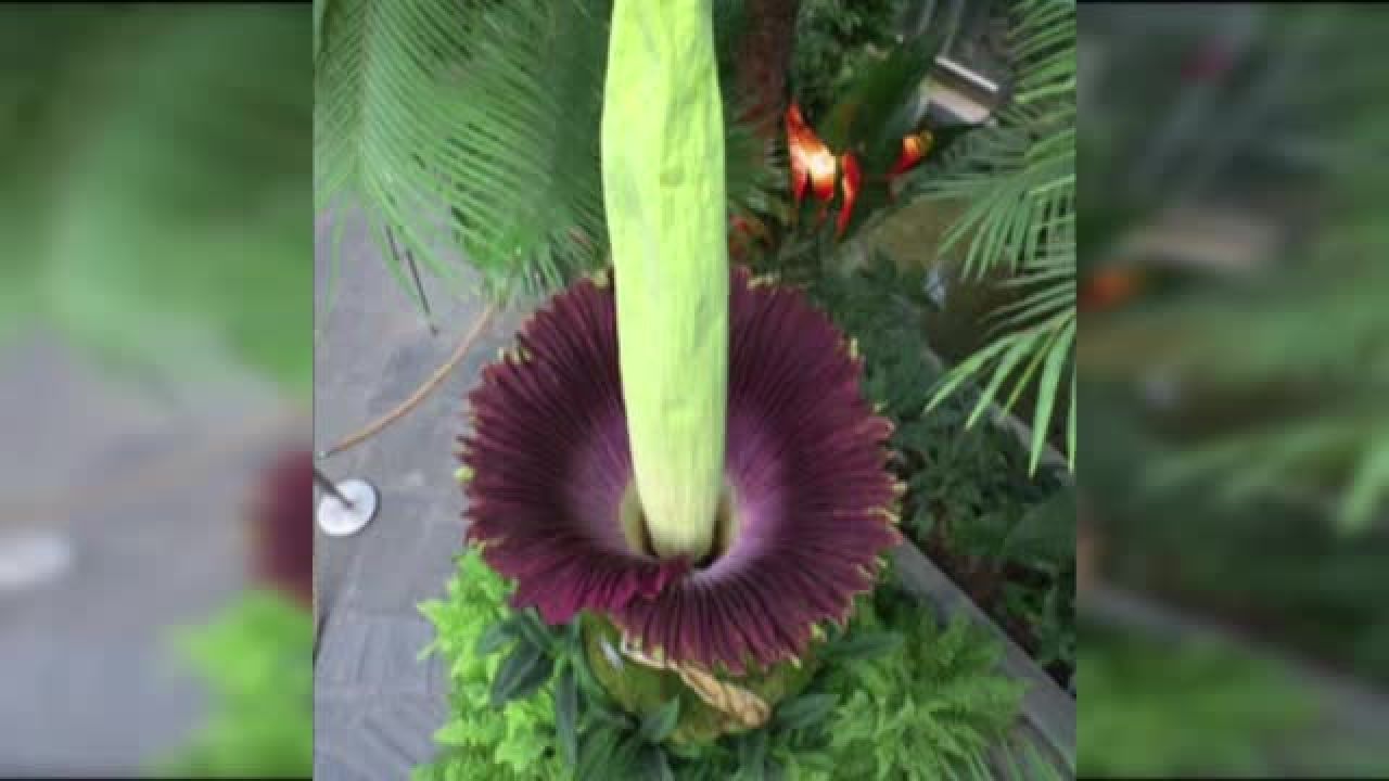 Este sarbatoare la gradina botanica din Washington! O imensa planta exotica, botezata ''floarea cadavru'', a inflorit pentru prima oara in cei zece ani de cand se afla in colectia gradinii.