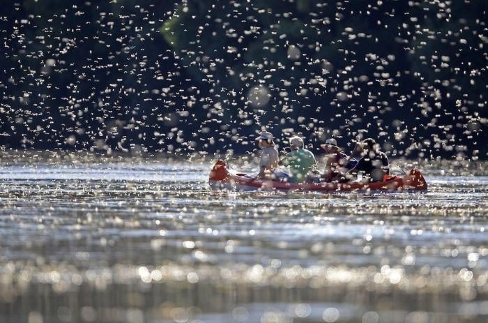 Imagini impresionante: Milioane de libelule, fotografiate de pescari langa Romania