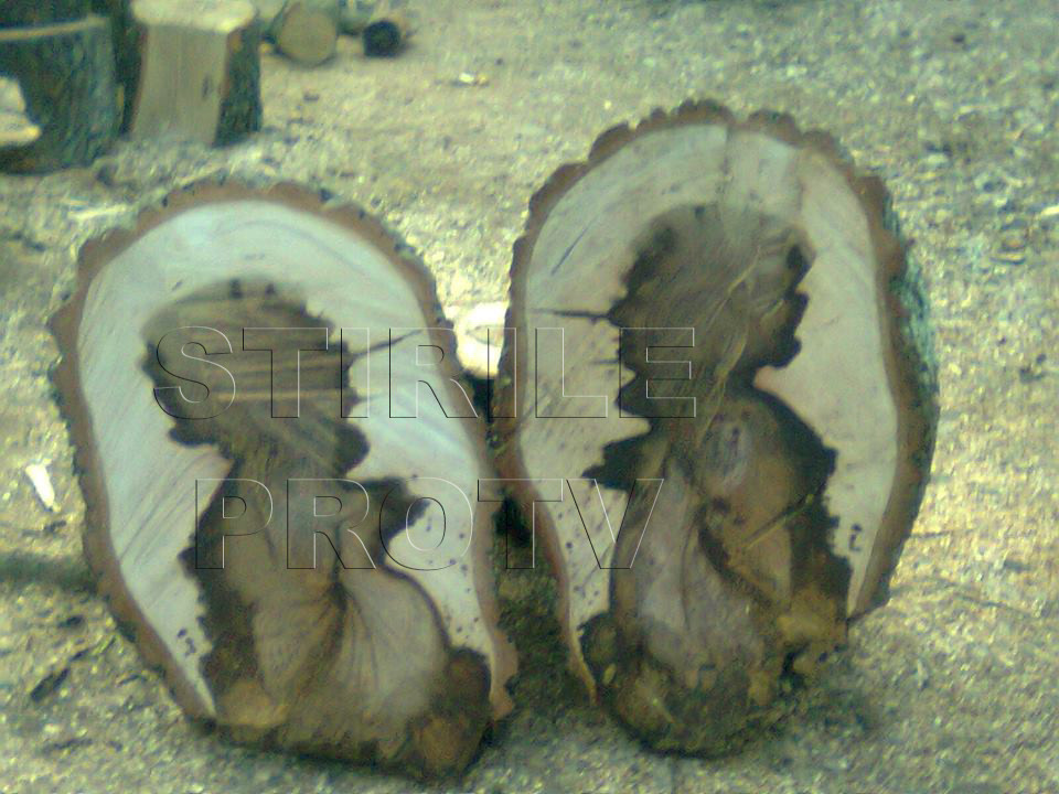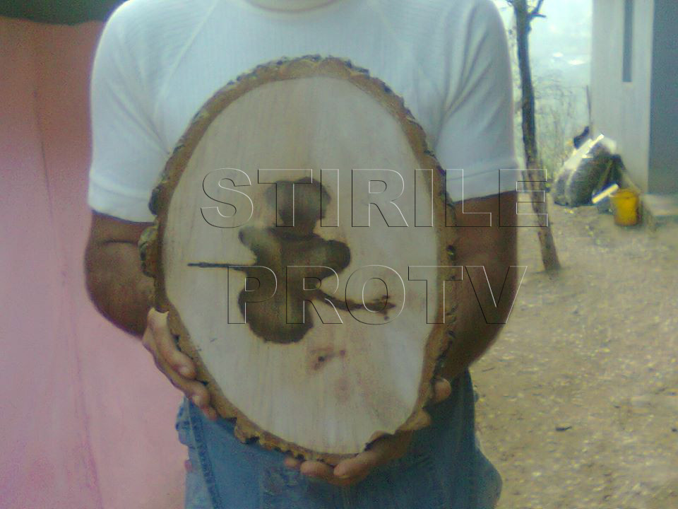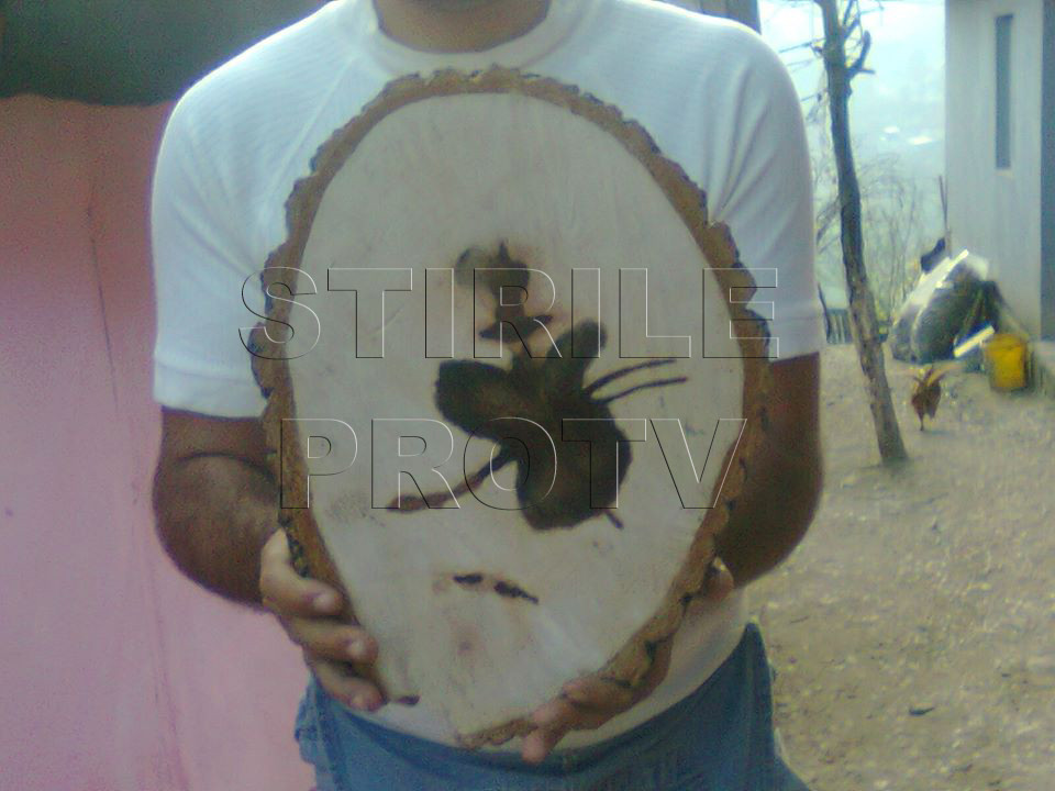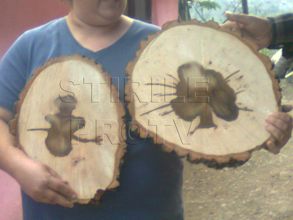 Un cititor StirileProTV.ro ne-a trimis pe pagina de Facebook cateva fotografii realizate de bunicii sai reprezentand forme ciudate descoperite in timp ce taiau lemnele.