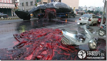 Cand totul parea ca decurge conform planului, a intervenit un incident la care nimeni nu se astepta: balena a explodat in timpul transportului, in trafic, in mijlocul orasului Taipei.