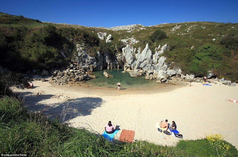 Apa sarata cristalina, nisip auriu si chiar valuri. Acesta este peisajul de vis pe care turistii il pot gasi pe plaja Gulpiyuri din nordul Spaniei.