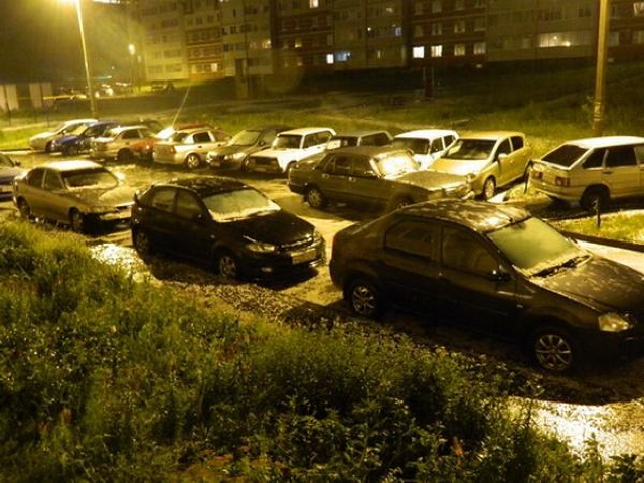 Ploaie si grindina cat pumnul intr-un oras din Rusia. Cum s-a transformat o parcare dupa furtuna