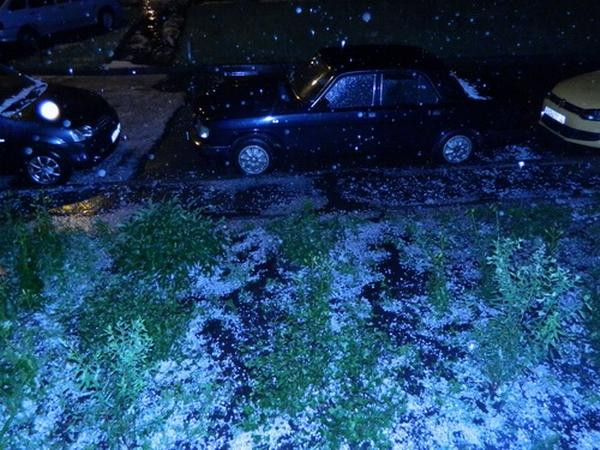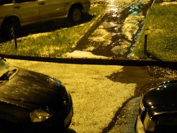 Imediat dupa furtuna, fotografii cu o parcare de masini inundata de pietrele cazute din cer au fost postate pe internet.