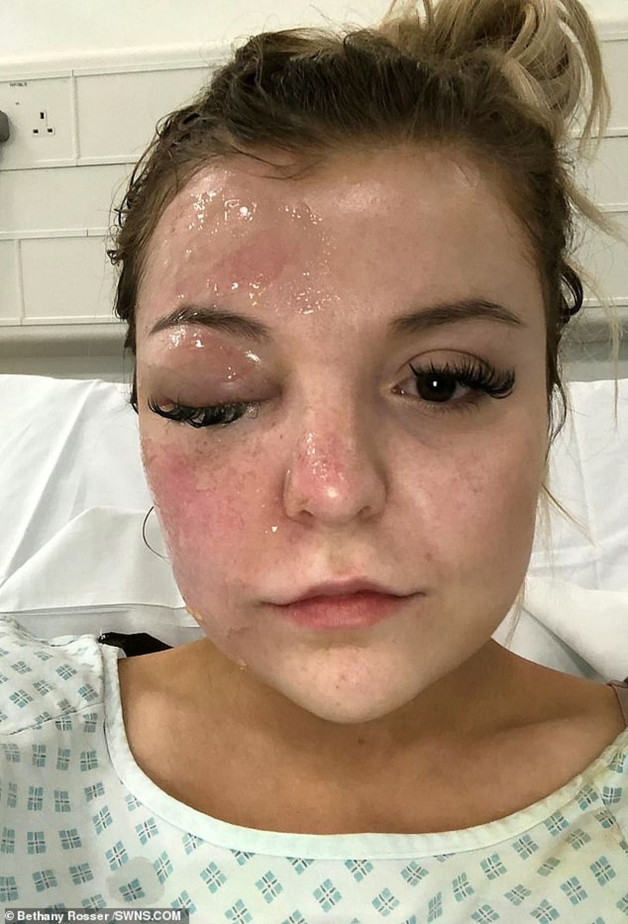 Bethany a sunat imediat la urgenţe, iar în timp ce aştepta ambulanta şi-a dat cu apă rece pe fată, ceea ce i-a agravat starea. Tânăra şi-a făcut o fotografie pe patul de spital şi a publicat-o pe internet pentru a atrage atenţia tuturor să nu repete greşeala ei.