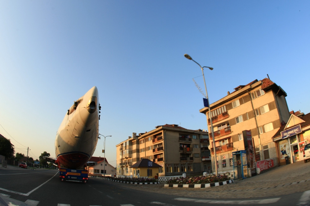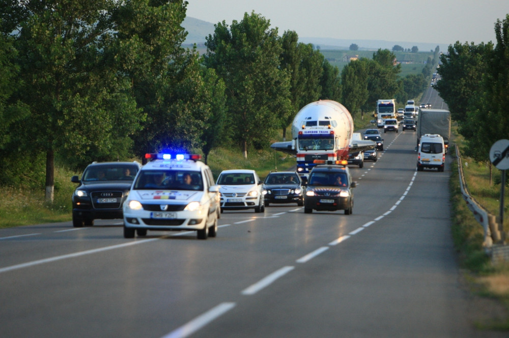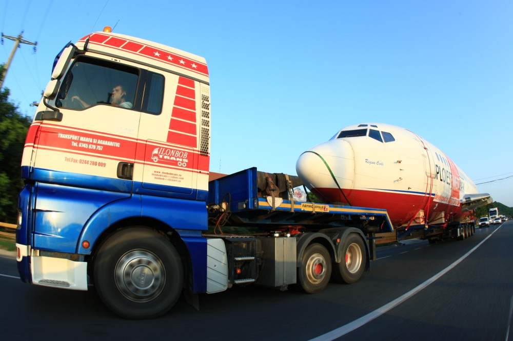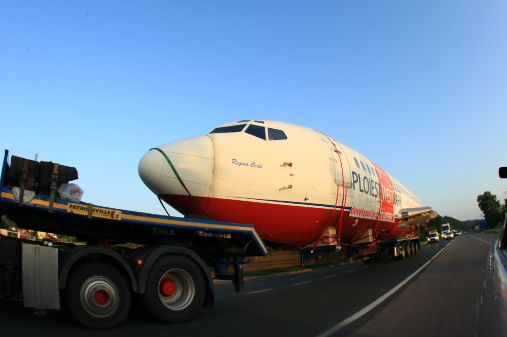Boeing-ul 737-200 de 37 de metri este transportat de la Bacau la Ploiesti. Destinatia finala? Ploiesti West Park, cel mai mare parc industrial si logistic din SE Europei. Scopul? Va fi transformat intr-o cafenea, accesibila din Autostrada A3.