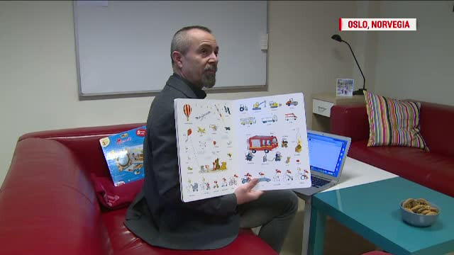 "Aici este o carte in care ei invata cuvinte norvegiene pentru ca vreau sa invete si engleza, si norvegiana. Daca as fi facut invers, daca i-as fi invatat romana dupa aceeasi metoda ar fi fost trist. De asta va spuneam ca este ceva normal sa invete romana."