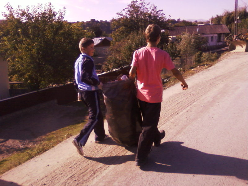 Si elevii Scolii cu clasele I-VIII Birsesti, jud. Vrancea, (primele trei imagini) indrumati de diriginti, au participat la campania "Let's do it Romania", strangand toate gunoaiele din comuna.