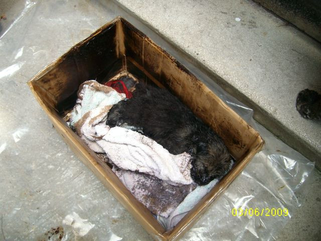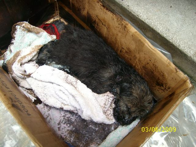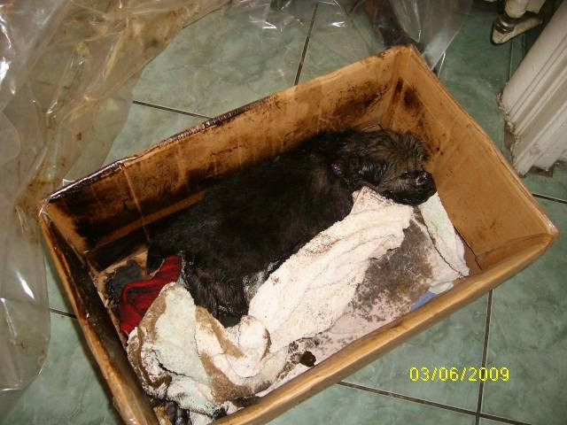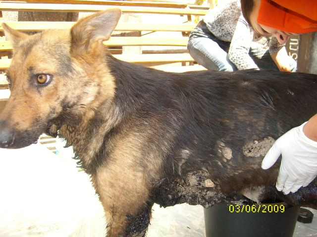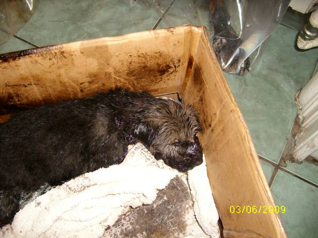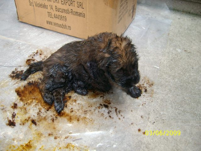 Mai jos, o poveste trista, a unei familii de catelusi formata din o mamica si cei patru pui ai sai. Cei cinci au fost gasiti pe una din strazile Bucurestiului, plini de smoala. Trei catelusi traiesc in continuare. Al patrulea nu a avut, insa, acelasi noroc!