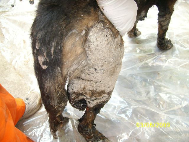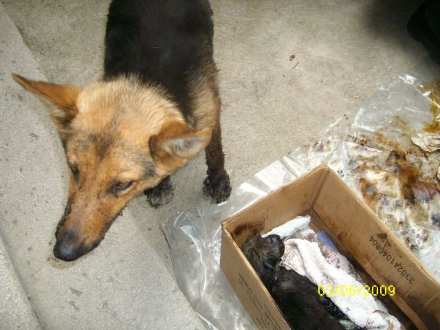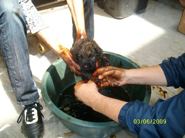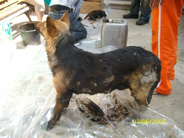"Raman valabile doar doua ipoteze: e posibil ca ei sa fi stat langa ceva cald care sa se fi varsat peste ei sau cineva a vrut sa scape de pui sau poate a vrut doar sa se... distreze (e o moda in Romania - aceea de a-ti bate joc de alte forme de viata -, moda care ne alunga undeva mult mai departe de preistoirie) si i-a aruncat in smoala. In aceasta situatie se explica de ce catelusa mama nu are smoala pe spate. E posibil sa fi intrat in smoala, ca sa-si salveze puii.