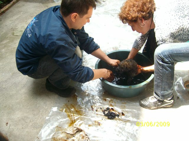 Tot ea le-a povestit celor de la "Robi" ca unul dintre pui a trebuit sa fie eutanasiat. Chiar daca a fost hranit imediat dupa ce a fost gasit, soarta ii fusese pecetluita: ranile ii erau pline larve de muste.