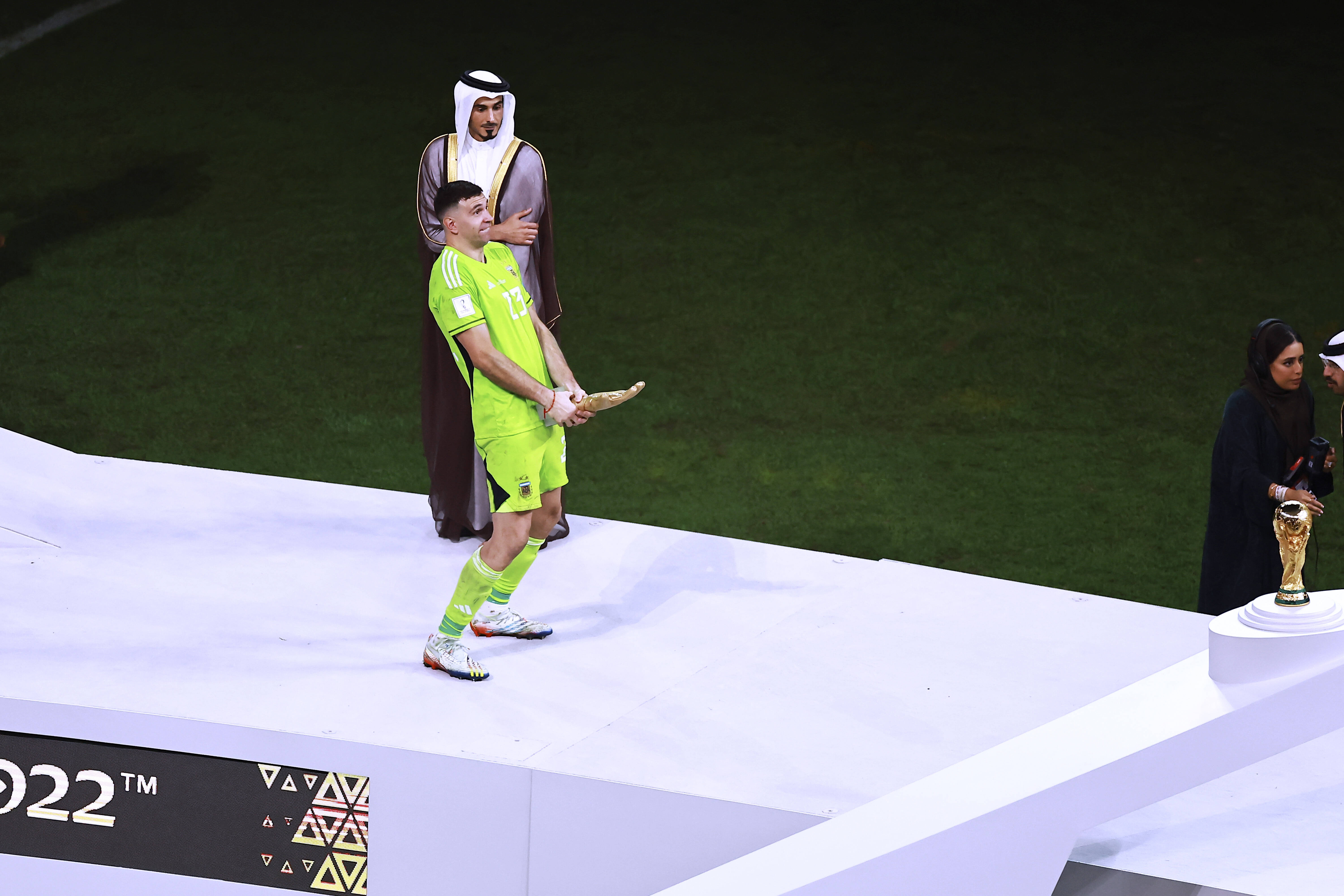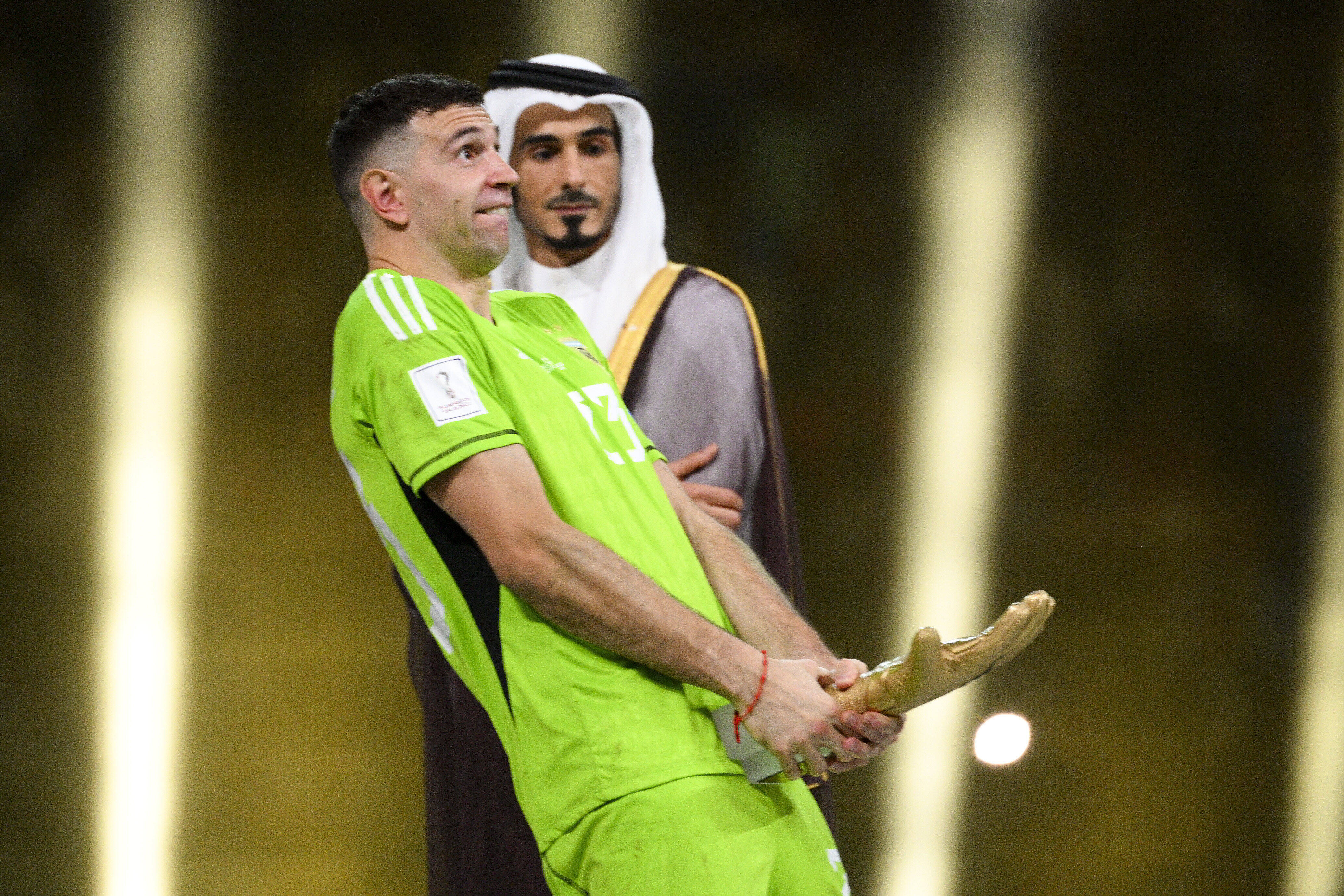 Martinez, în vârstă de 30 de ani, a jucat rolul de erou pentru Argentina în victoria de la Cupa Mondială 2022 împotriva Franței, cu o paradă uimitoare în ultima repriză de prelungiri și un penalty apărat pentru a ajuta la obținerea victoriei. El a fost emoționat și a plâns de bucurie, dar după ce a primit trofeul pentru cel mai bun goalkeeper al turneului final, Martinez i-a lăsat pe toți cu gura căscată.