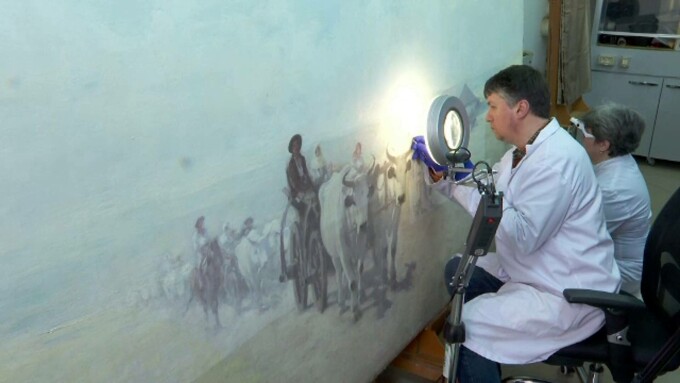 O lucrare emblematică pentru arta românească prinde viață din nou la Palatul Culturii din Iași. În curând, aici va fi expusă, pentru prima dată după restaurare, cea mai mare pictură din seria „Car cu boi”, de Nicolae Grigorescu.