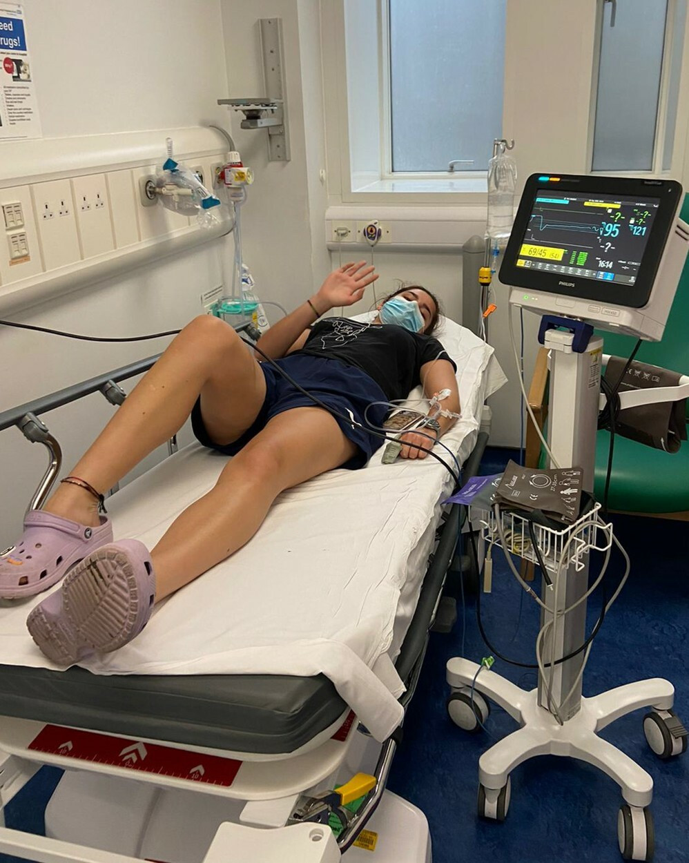 A ajuns în cele din urmă la spital, unde medicii au descoperit că studenta era în șoc septic, iar doctorii au decis să o bage în comă indusă timp de 16 zile, pentru a-i salva viața.