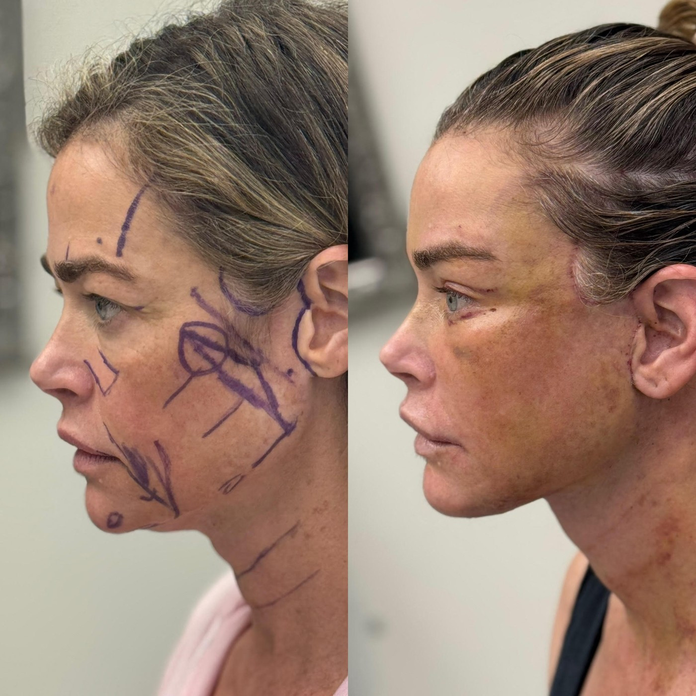 Intervenția a inclus un AuraLyft complet, operație la pleoape, lifting de sprâncene, lifting de gât și transfer de grăsime din coapse către față, pentru a obține un aspect mai tânăr și mai proaspăt.