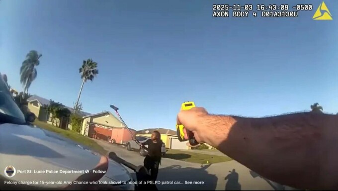Imaginile filmate cu camera corporală a polițistului, publicate de Departamentul de Poliție din Port St. Lucie, arată adolescenta cu lopata în mână în mijlocul străzii, apropiindu-se de polițistul care stătea în mașina de patrulă.