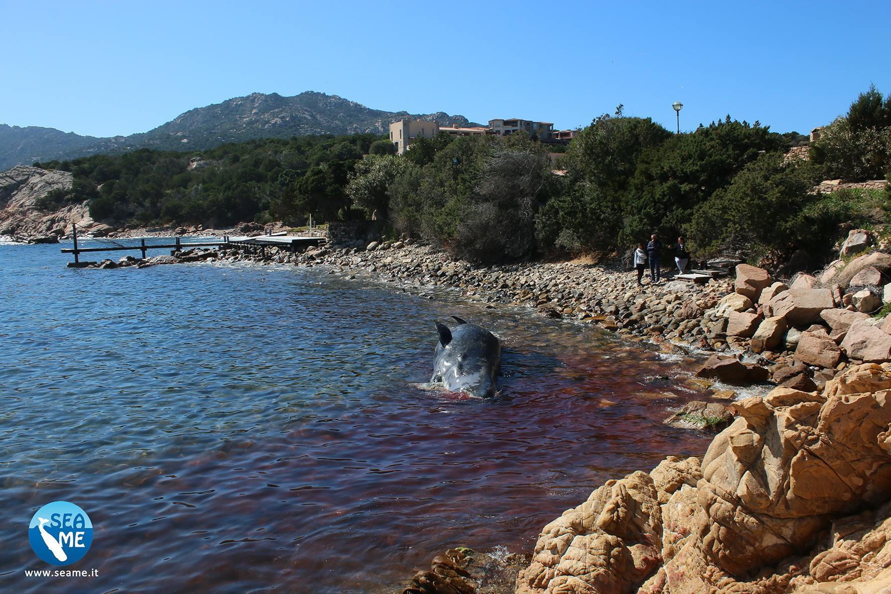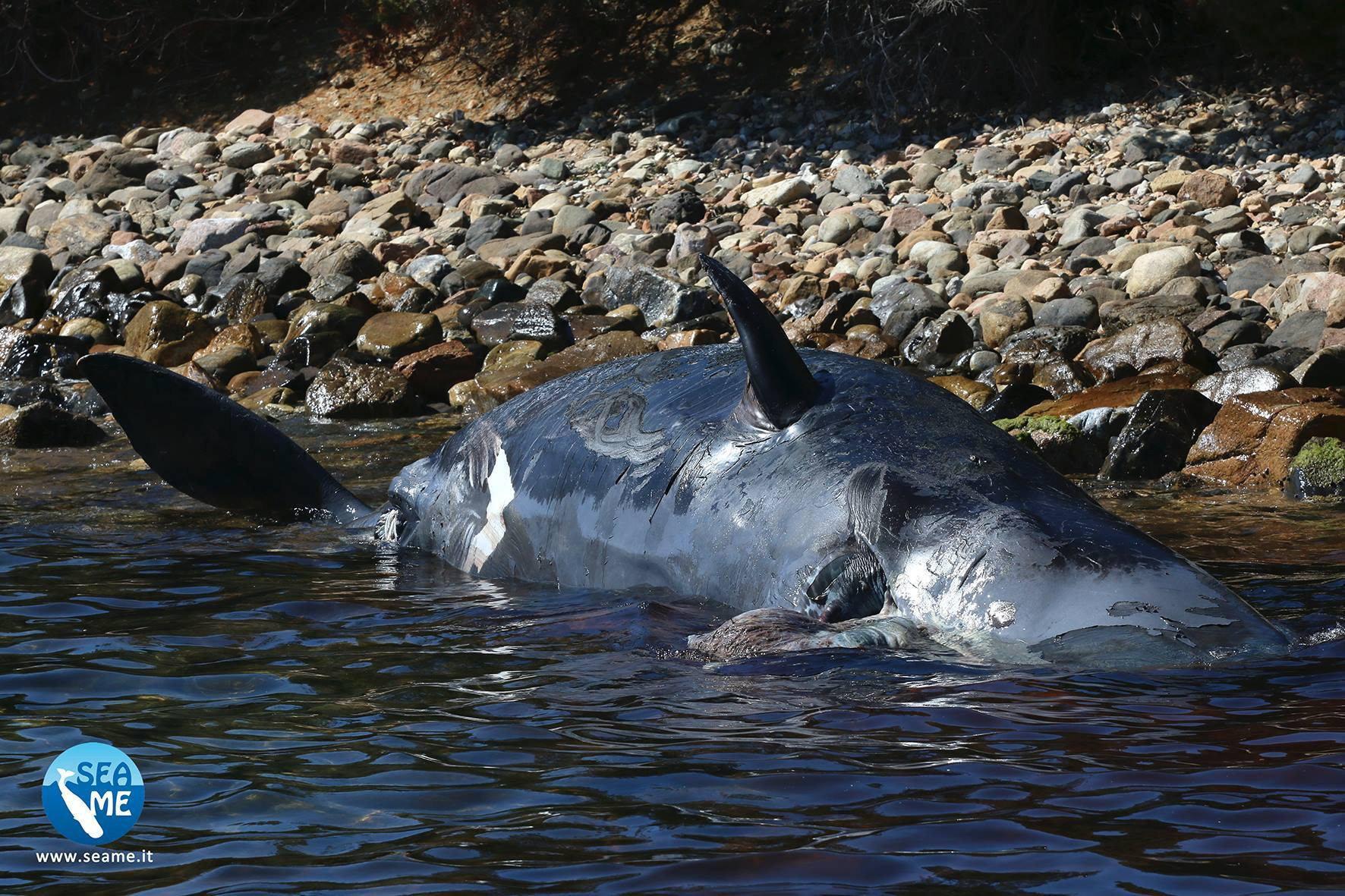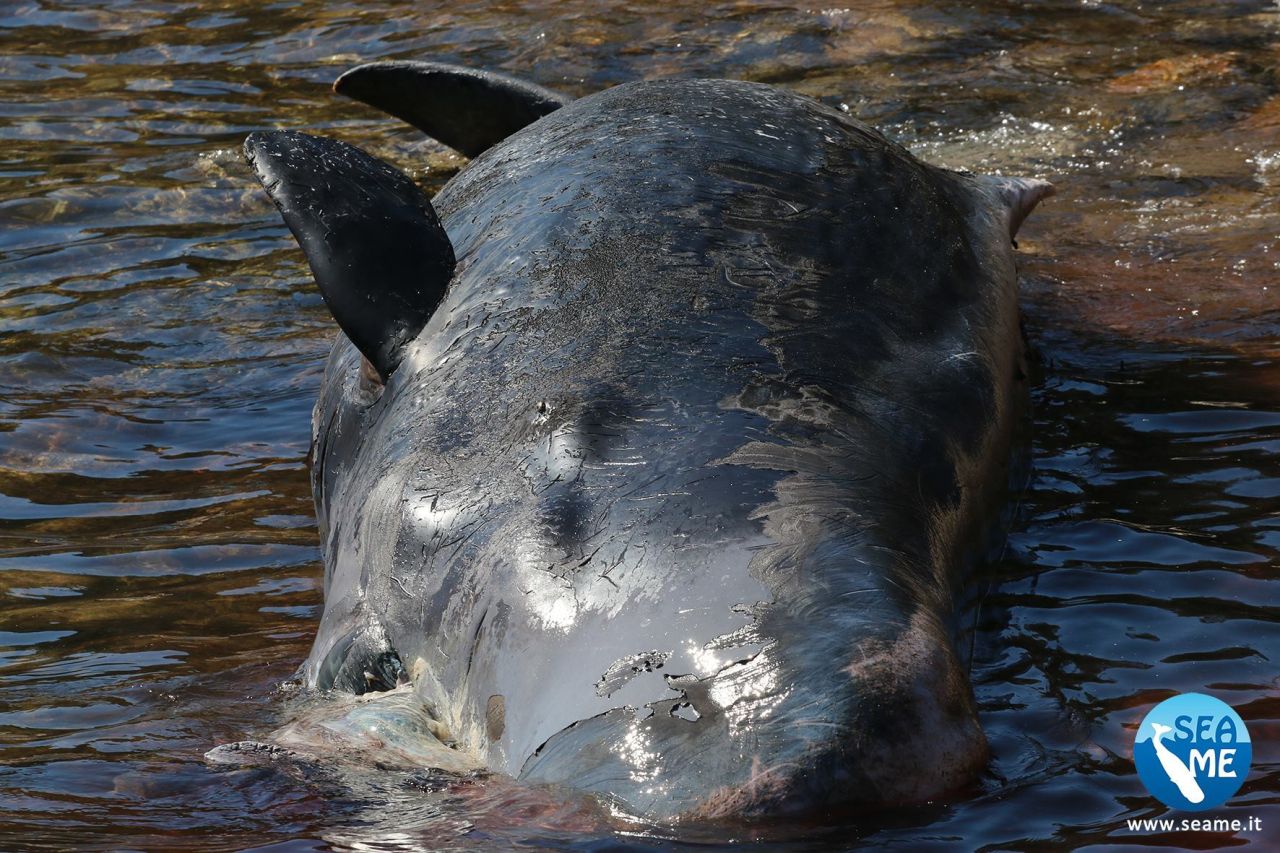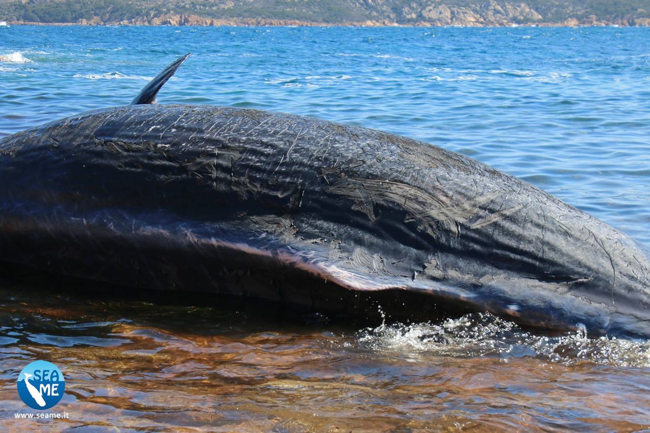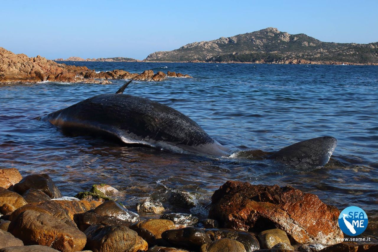 Animalul mort, cu o lungime de opt metri, a fost descoperit pe o plajă din staţiunea Porto Cervo, o populară destinaţie turistică din Sardinia.