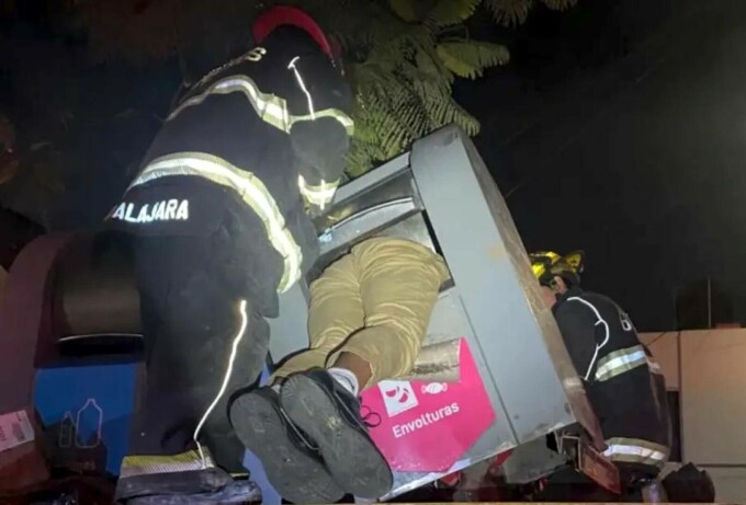 Un bărbat din Guadalajara a rămas blocat într-un container de deșeuri solide numit „Punto Limpio” (Punct curat). A avut nevoie de ajutorul pompierilor ca să-l elibereze.