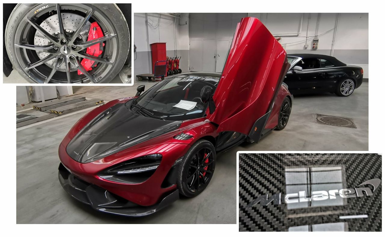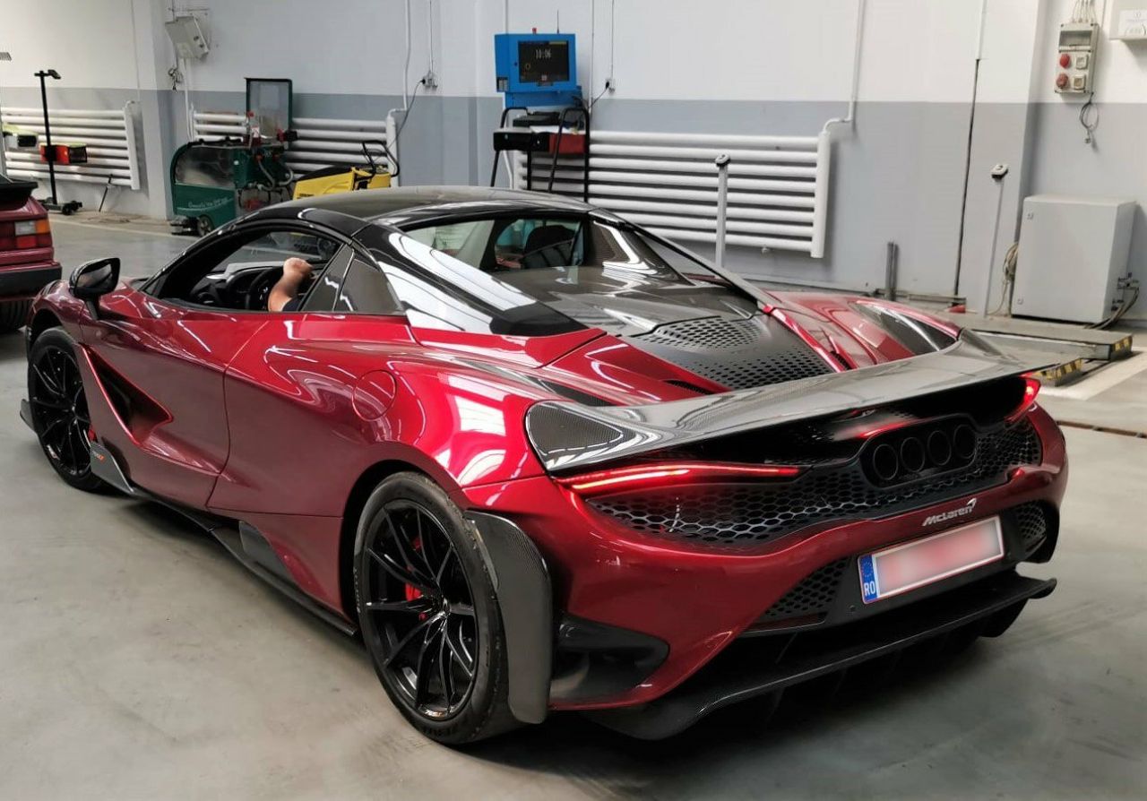 Este vorba despre un McLaren 765LT Spider, unul dintre cele 765 de exemplare ale acestui model fabricat în ediție limitată.