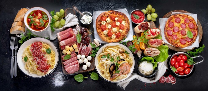 Există multe feluri care sunt considerate în mod obișnuit italiene – precum pizza, spaghete cu chifteluțe, lasagna și cannoli. Bucătăria italiană înseamnă mult mai mult decât paste.