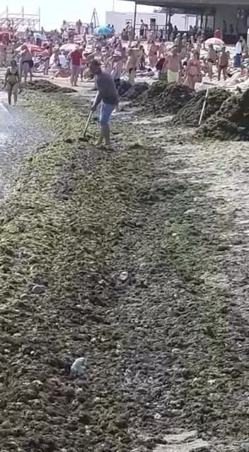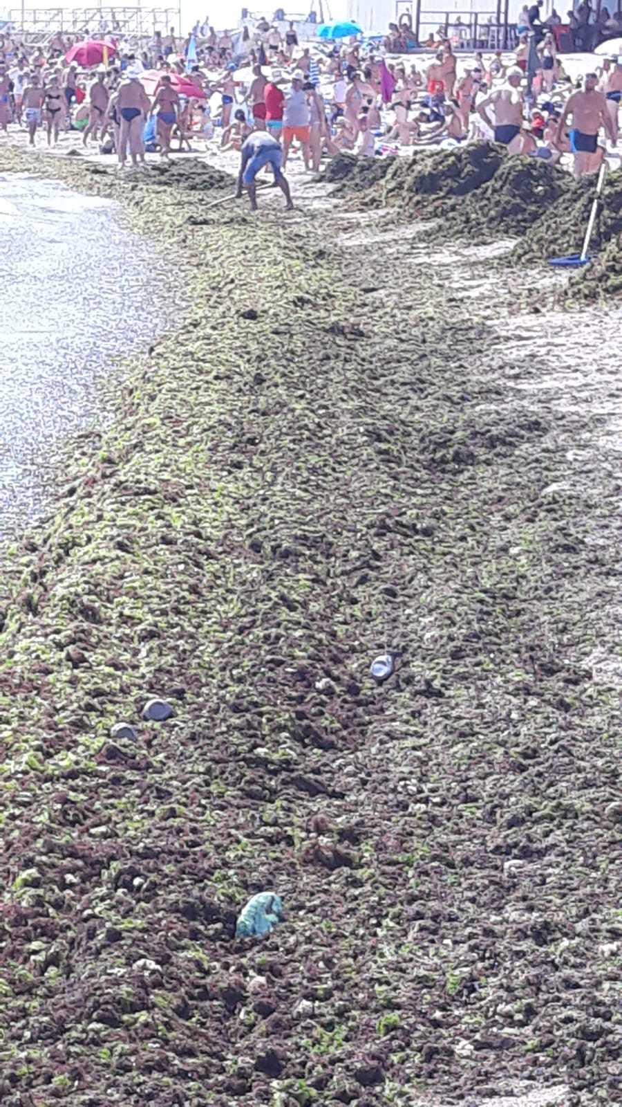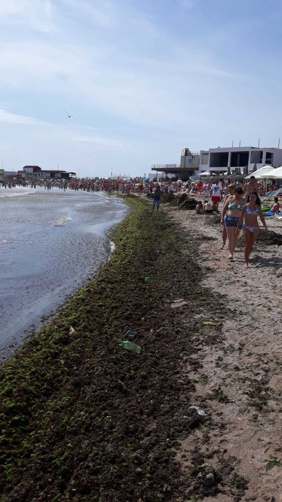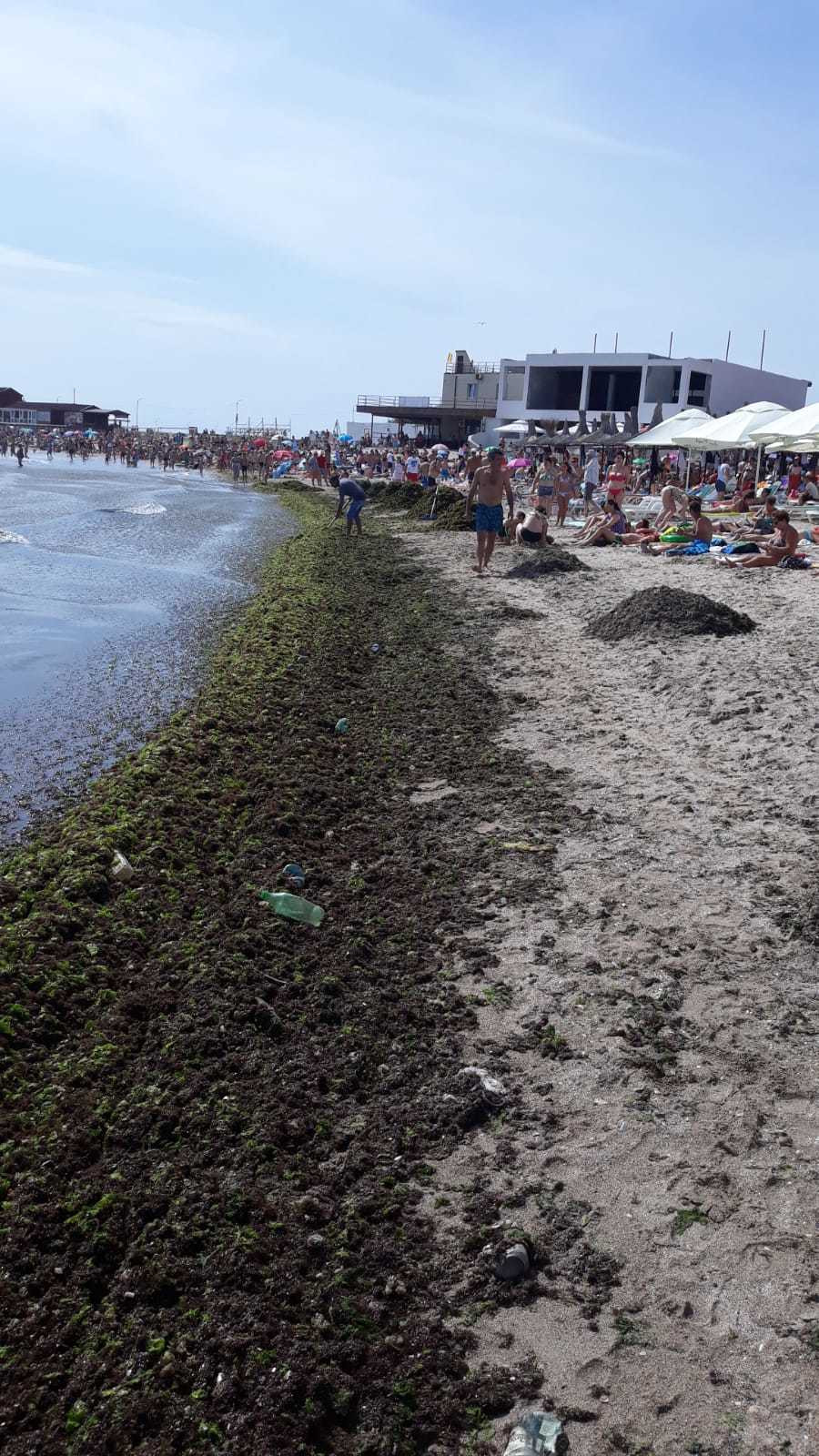 Un cititor Știrile PRO TV ne-a trimis imagini cu cantitățile uriașe de alge care au acoperit malul. De asemenea, ne-a relatat că primăria a trimis un singur angajat să facă curățenie în zonă, în jurul orei 11:00.