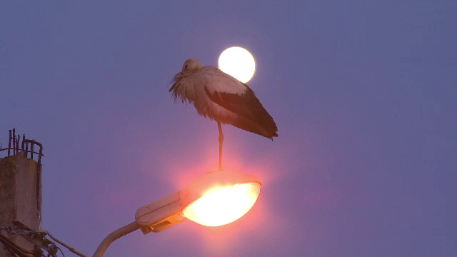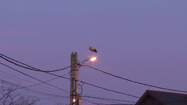 Situație inedită într-un cartier mărginaş din Piteşti. Două berze, mama și pui, au devenit atracţia zonei, mai ales că oamenii nu sunt obişnuiţi să le vadă, în această perioadă, la noi în ţară.