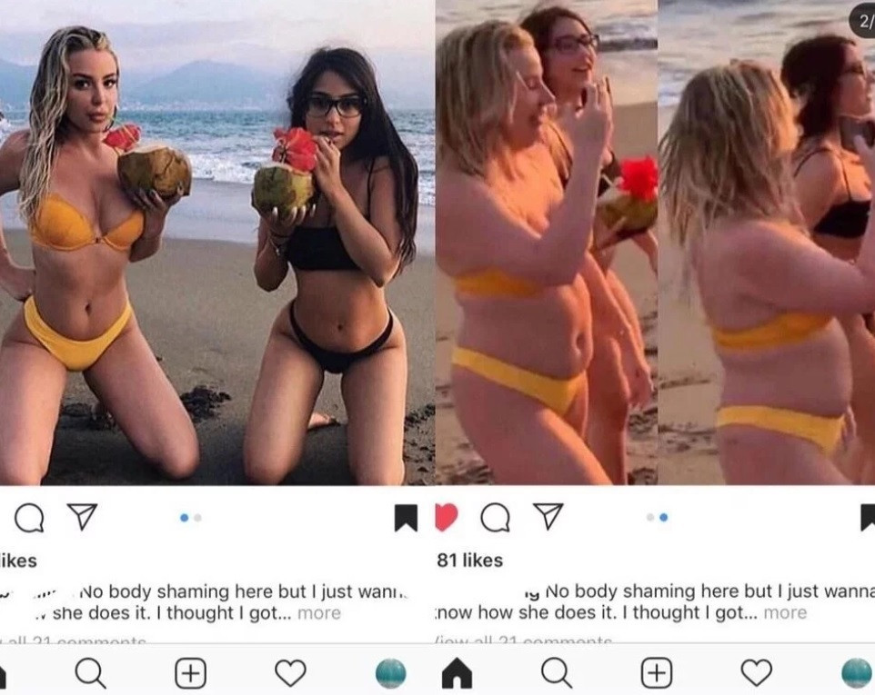 Multe persoane influente pe rețelele de socializare apelează la programe de editare pentru a arăta perfect pe plajă, în costumul de baie.