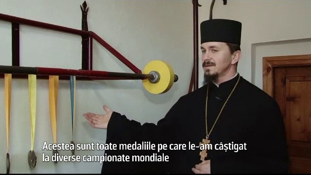 Un preot din Ucraina schimbă zilnic hainele monahale cu echipamentul de halterofil. Părintele se antrenează între slujbe, participă des la competiţii şi deţine numeroase medalii care îi dovedesc măiestria și puterea.