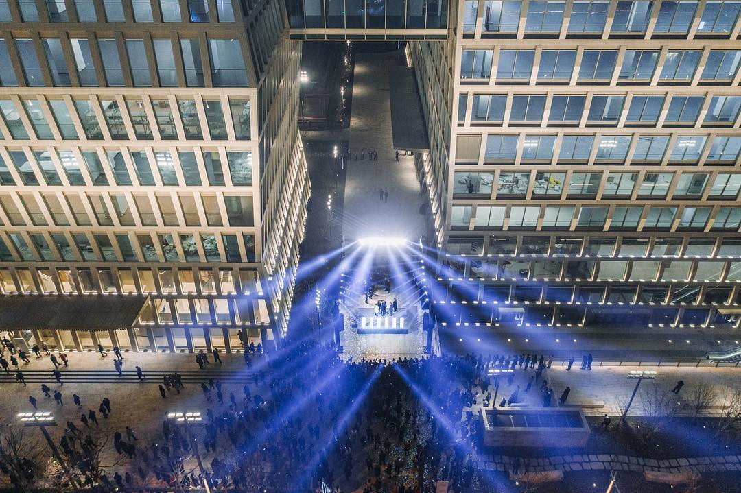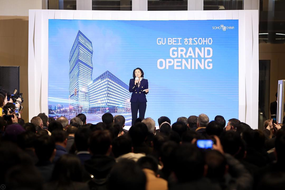Turnul de birouri are 38 de etaje a fost inaugurat pe 28 februarie, printr-o ceremonie care a fost marcată de expoziția personală de fotografie a lui Pan Shiyi expusă în holul SOHO Gubei. Expoziția cuprinde peste 80 de portrete de antreprenori, oameni de știință, actori, scriitori, lucrători în construcții, profesori și copii din satul Panji din Tinahsui Gansu.
