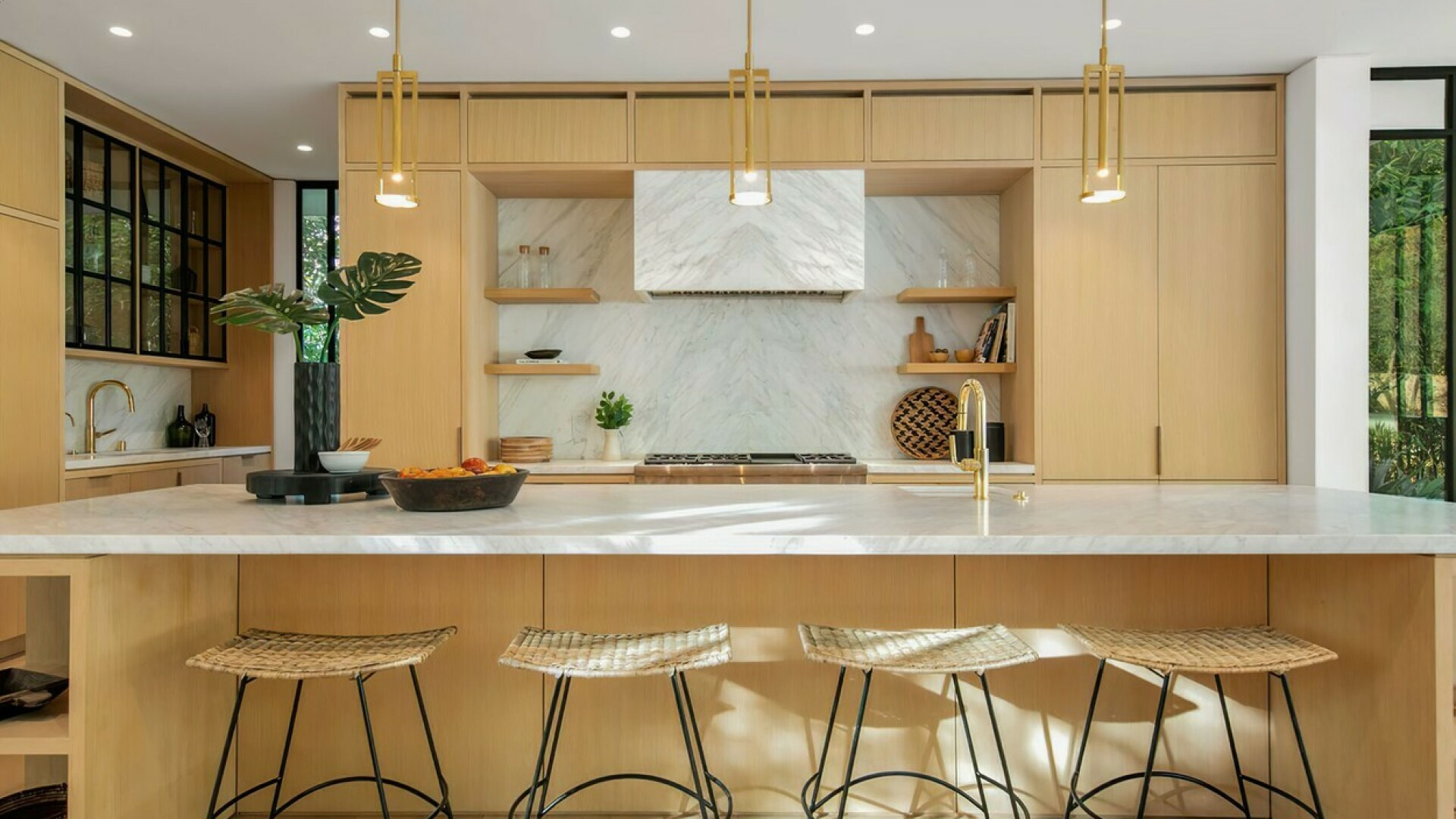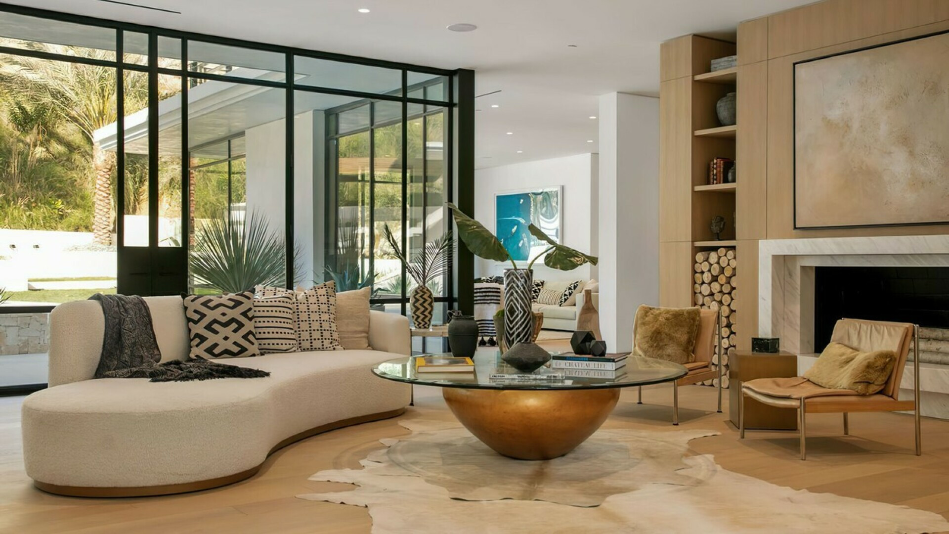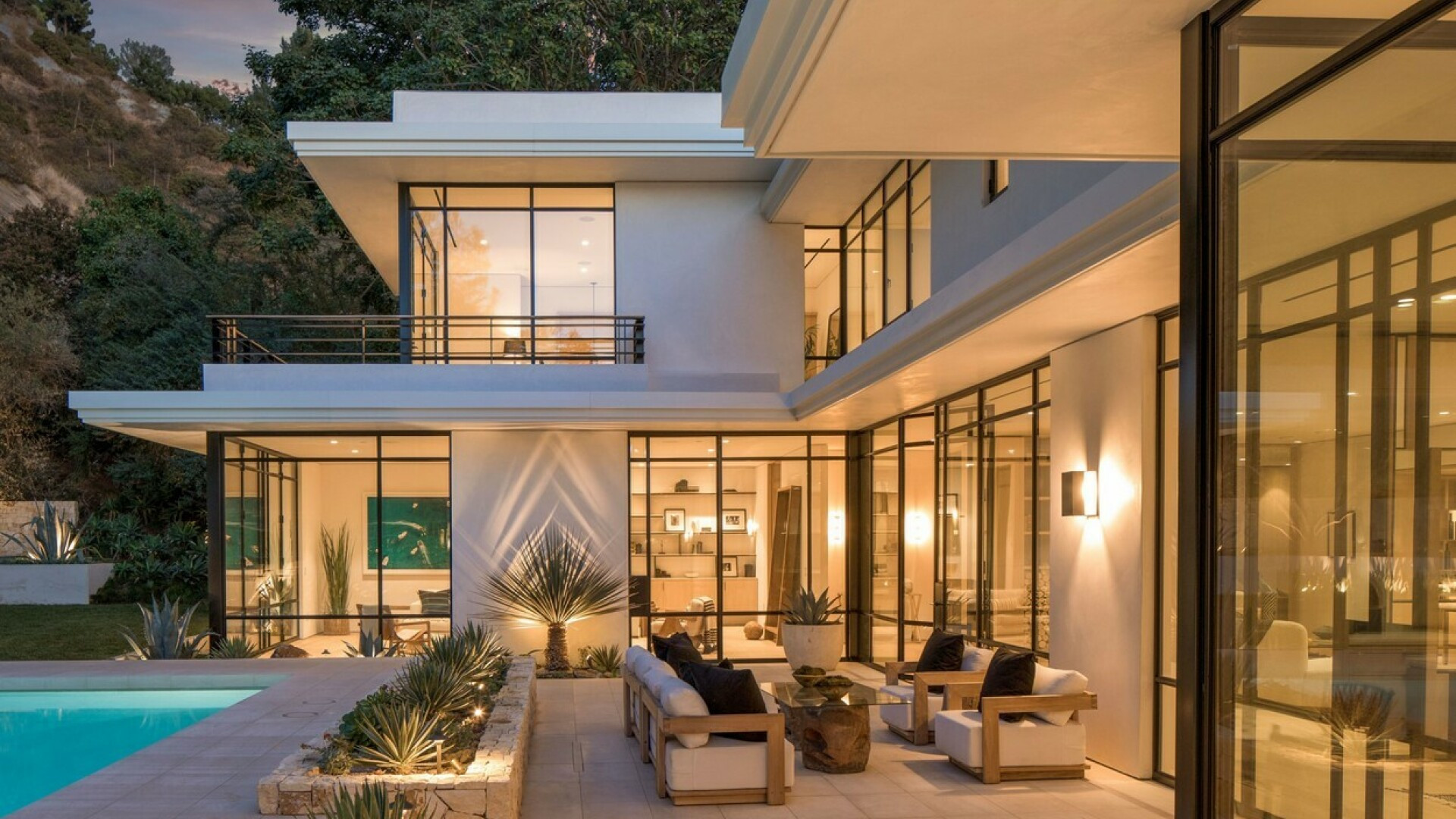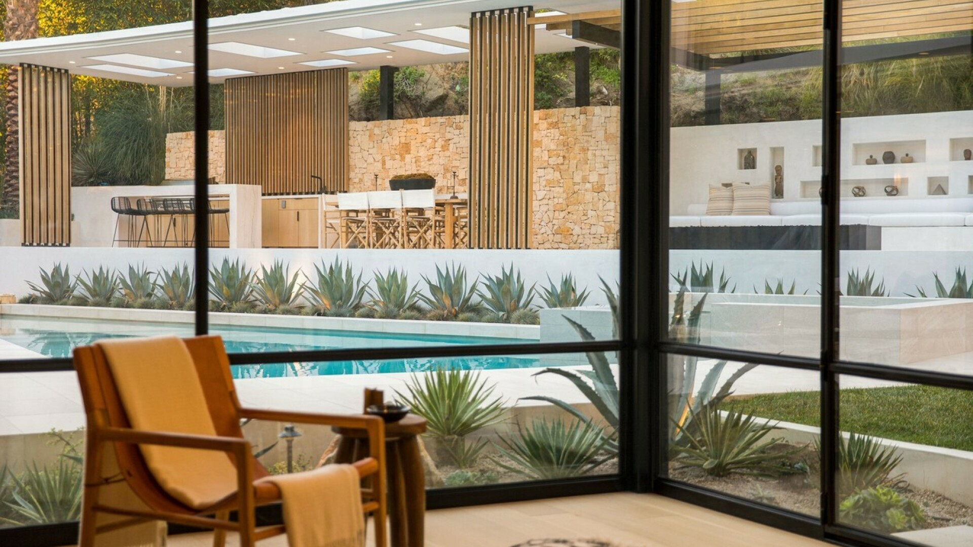 În casă se regăsesc șase dormitoare, 7 băi, o bucătărie deschisă și o bibliotecă ce se transformă în cinematograf doar prin atingerea unui buton. Iar în spatele casei există o piscină, alături de o cabană cu o bucătărie externă, un bar, zonă de luat masa în aer liber și un șemineu.