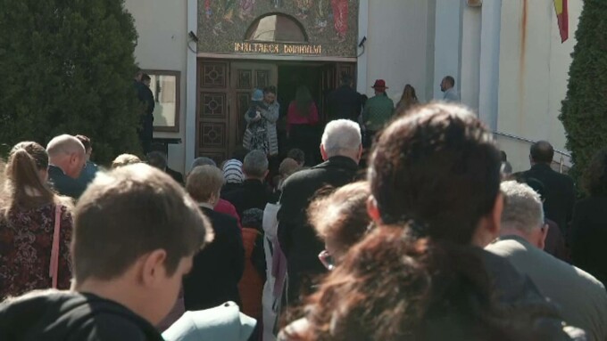 În Cluj-Napoca, Biserica Ortodoxă „Înălțarea Domnului” s-a dovedit neîncăpătoare pentru credincioși, așa că unii au ascultat slujba de Florii din curte. Printre ei s-au aflat și copii.