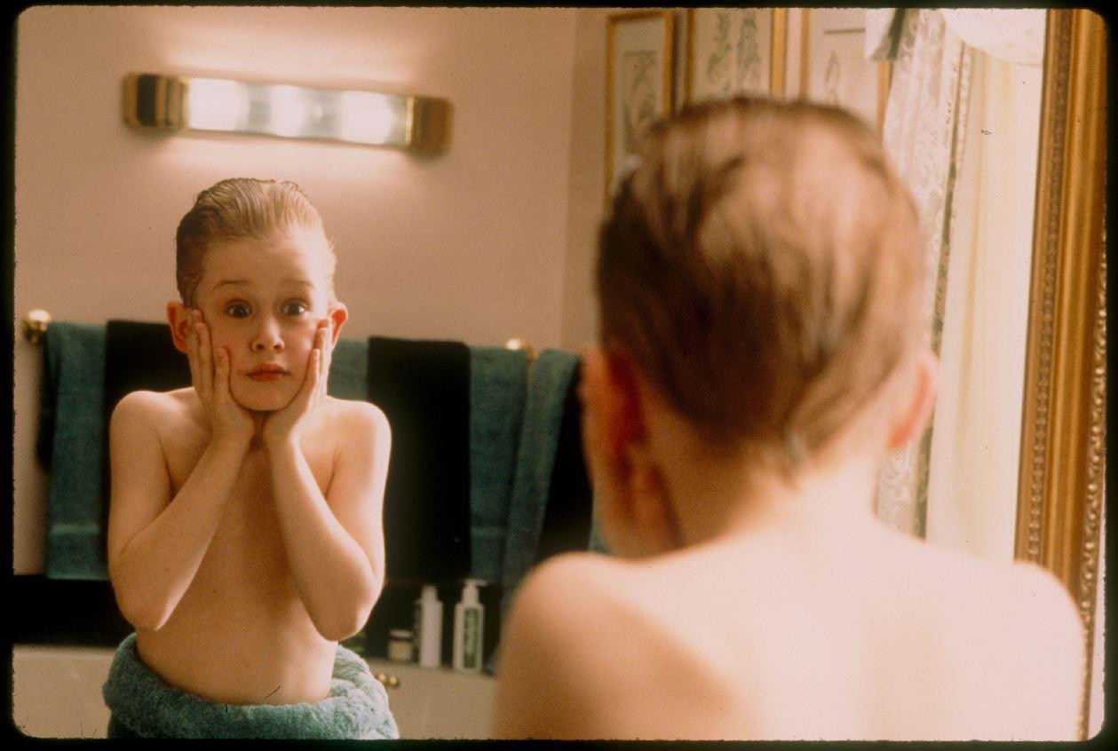 Scena în care Kevin își pune aftershave și țipă cu mâinile pe obraji a devenit imaginea-emblemă a filmului. Deși inițial Culkin trebuia doar să țipe, actorul a improvizat gestul inspirat de celebrul tablou „Țipătul” de Edvard Munch. Ideea a fost atât de bună, încât a rămas în film și a ajuns pe toate afișele promoționale.