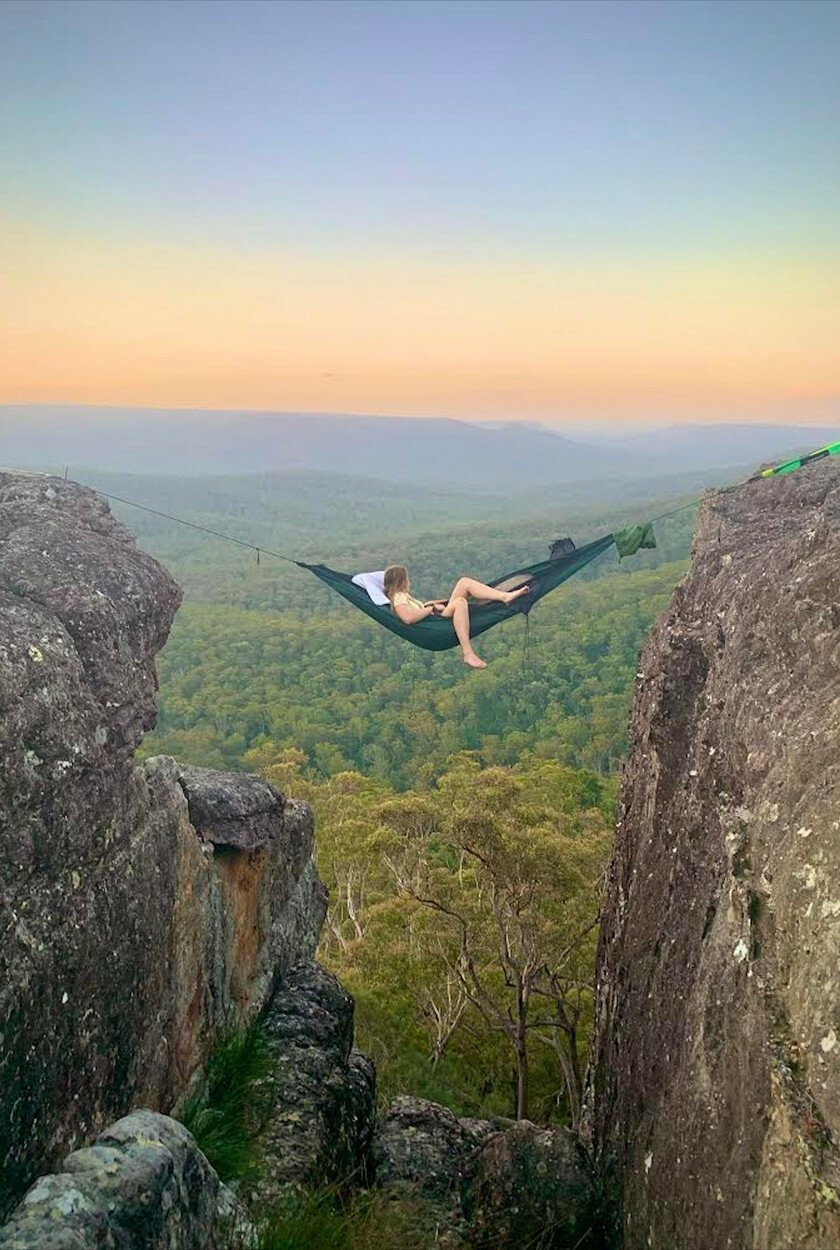 Sam Simons (23 de ani) și Ariana Simons (19 ani) călătoreau cu familia pe coasta de sud din New South Wales, când au dat peste locația incredibilă, unde au decis să monteze hamacele.