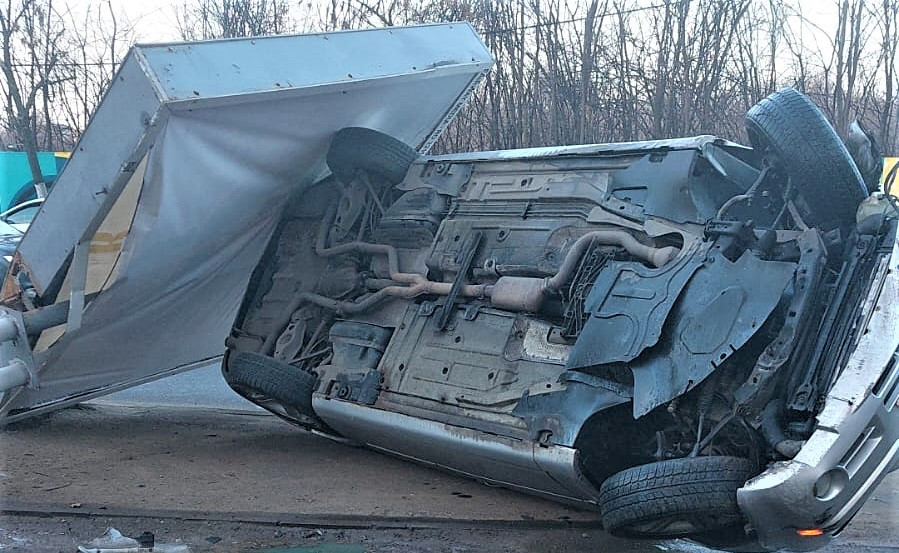 În urma impactului, acesta s-a răsturnat pe lateral, lovind și doi pietoni, care se aflau pe trotuar.