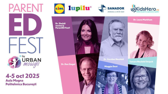 Cel mai mare eveniment de parenting din România, ParentED Fest, va avea loc pe 4-5 octombrie 2025, la București. Evenimentul, ajuns la ediția a doua, va reuni experți de talie mondială în domeniul creșterii și îngrijirii copiilor: Maggie Dent, expert recunoscut în parenting și autoare de cărți despre dezvoltarea echilibrată a copiilor; Dr. Laura Markham, psiholog și autor de bestselleruri despre parentingul bazat pe conexiune; Dr. Shefali, psiholog clinician de talie internațională, care se întoarce la ParentED Fest pentru a doua oară, după succesul înregistrat la ediția de anul trecut; Dr. Gordon Neufeld, psiholog specializat în dezvoltarea copilului și pionier în domeniul atașamentului; Tamara Neufeld Strijack, terapeut și autor și Dr. Daniel Siegel, neuropsihiatru de renume mondial și pionier în integrarea neuroștiinței cu psihologia.