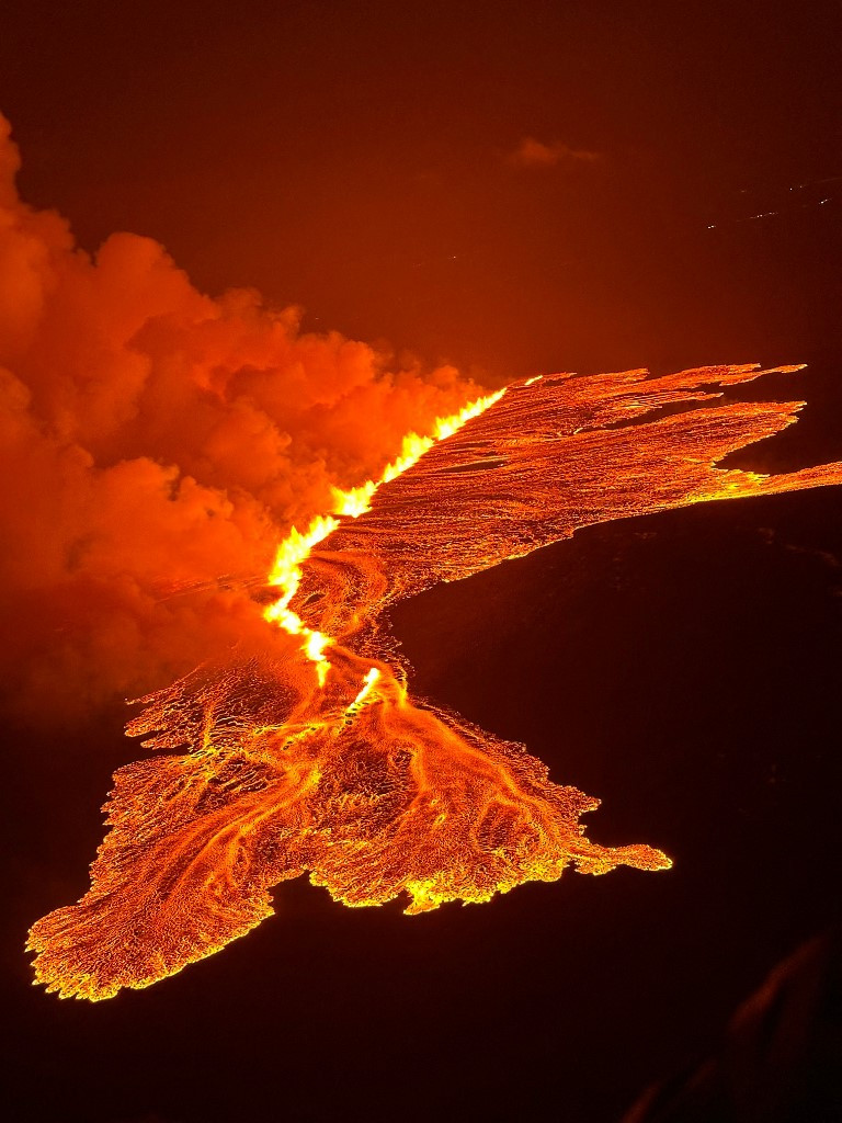 O "erupţie vulcanică a început între Stora Skogfell şi Hagafell, în Peninsula Reykjanes", în sud-vestul ţării, a anunţat Institutul de Meteorologie Islandez (IMO) într-un comunicat, în timp ce fluxurile de imagini video în direct arătau lava vulcanică incandescentă şi fum.