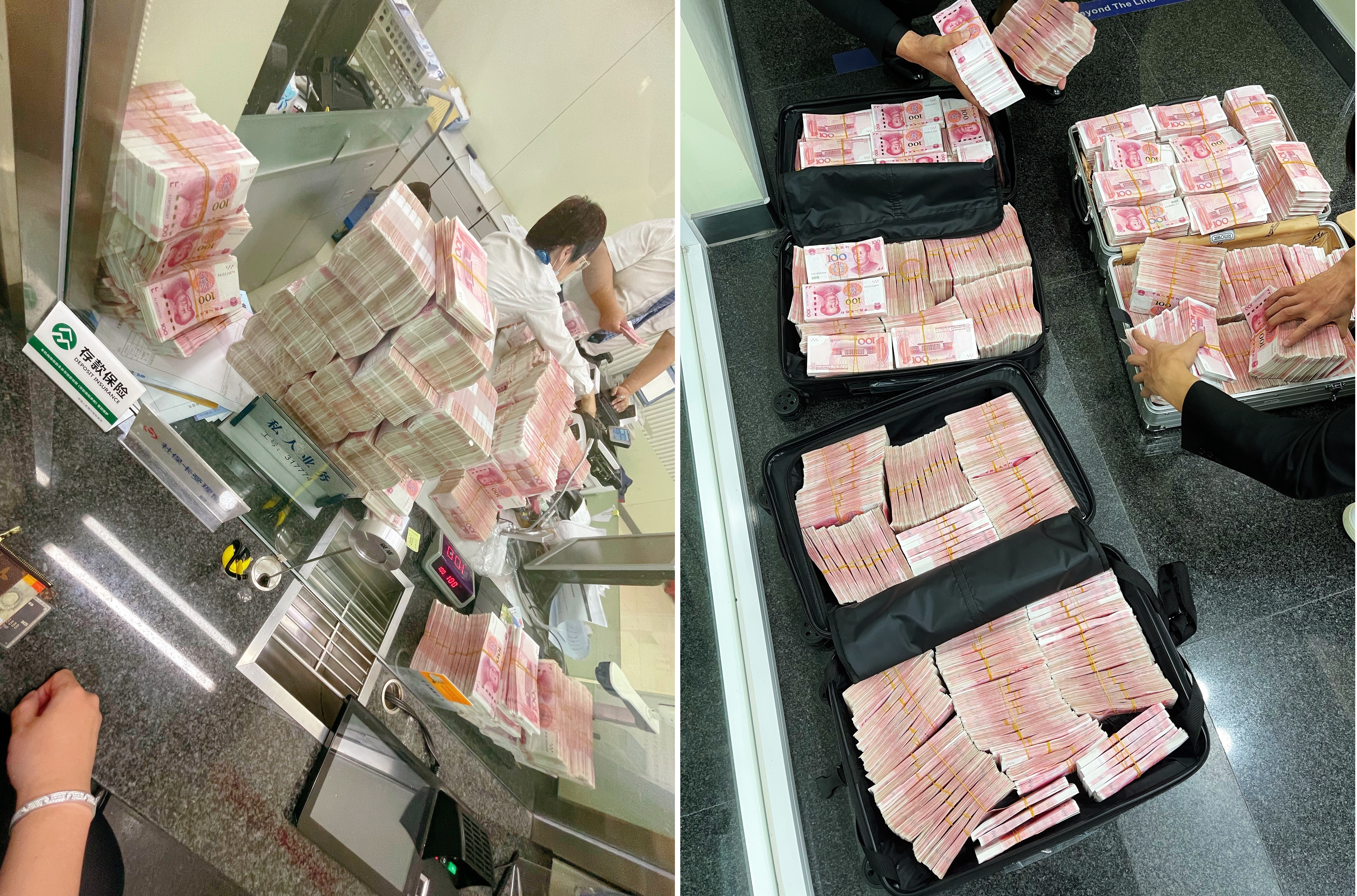 FOTO. Un milionar chinez și-a retras economiile de la bancă după ce s-a certat cu angajații pentru că nu avea mască