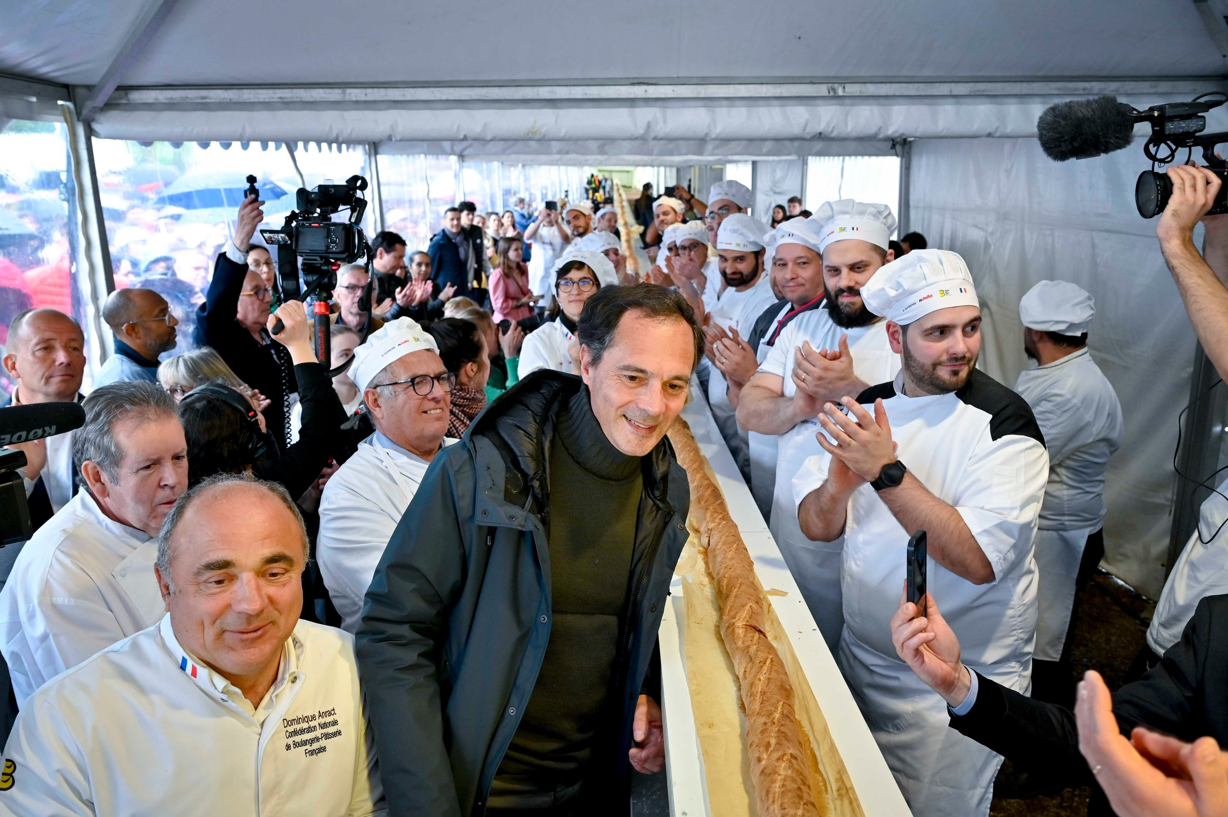 Bagheta, de aproximativ 235 de ori mai lungă decât cea tradiţională, a fost făcută la Suresnes, în suburbiile Parisului, în timpul unui eveniment al confederaţiei franceze a brutarilor şi patiserilor.