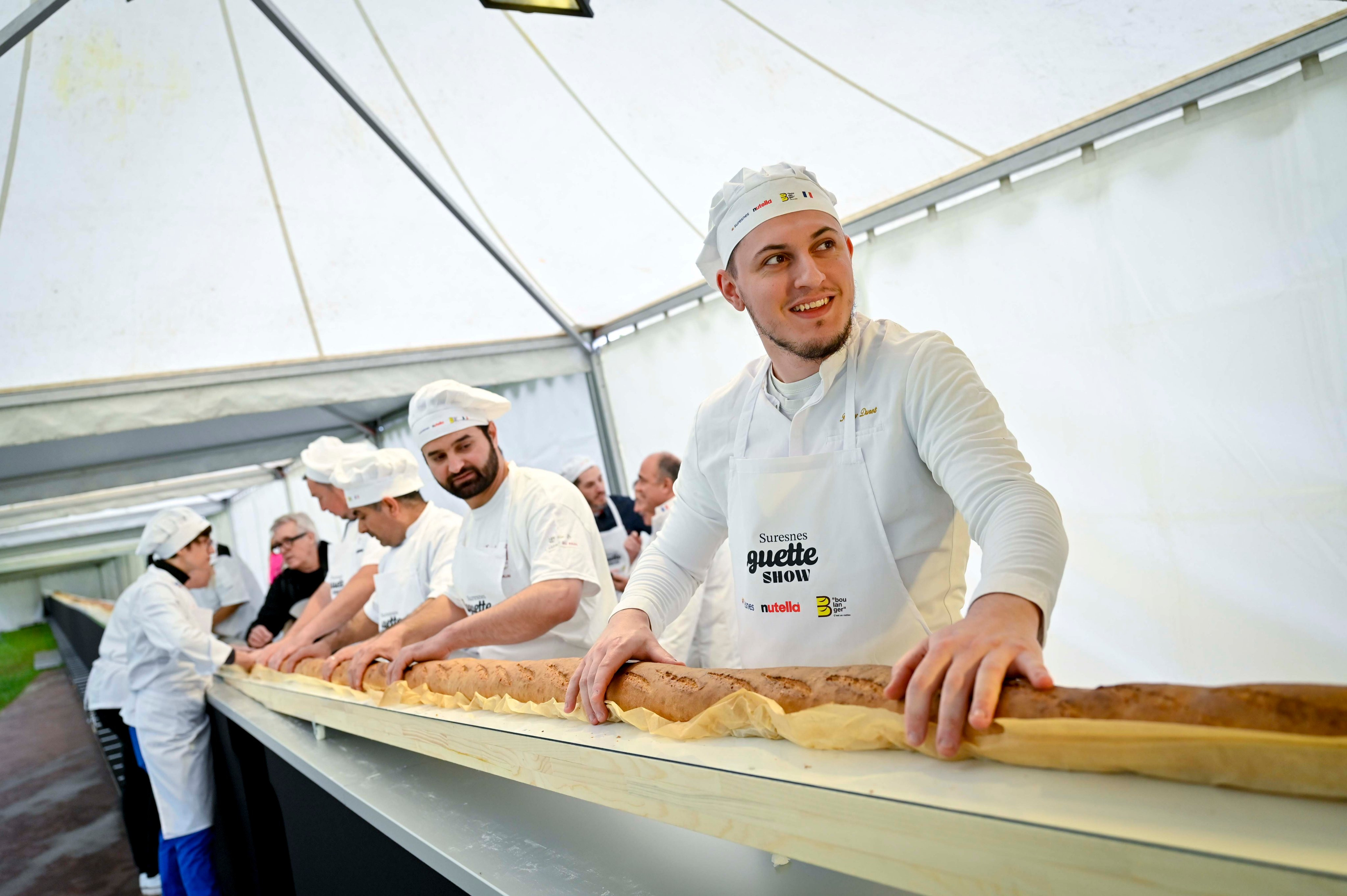 Le record du monde de la plus longue baguette est franchi : la #baguette réalisée aujourd’hui à Suresnes mesure 140,53 m !!!! Elle entre dans le Guiness World Records Book après celle des italiens (132,62m)!Bravo @cnbpf@NutellaFR @FerreroFr pic.twitter.com/ITH7fe9gP3
