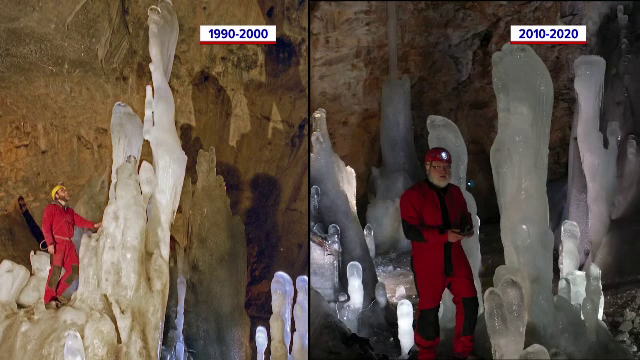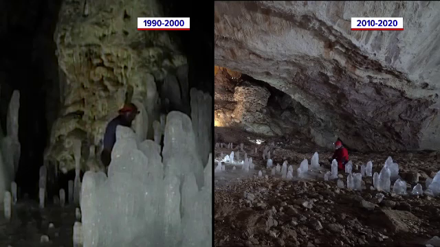 Silviu Constantin, speolog: „Este un echilibru foarte fragil, suntem la o temperatură un pic sub 0 grade, undeva la -4, -5 grade. Dacă echilibrul acesta se strică, dacă ajungem ca echilibrul să fie peste 0, pierdem gheața. Acum evident, toată lumea știe și vede că nu mai sunt iernile care au fost. Gheața nu înseamnă un mare bloc de gheață, sunt stalagmite de gheață foarte frumoase, practic se duce o parte din atractivitatea peșterii, asta presupune scăderea numărului de turiști”.