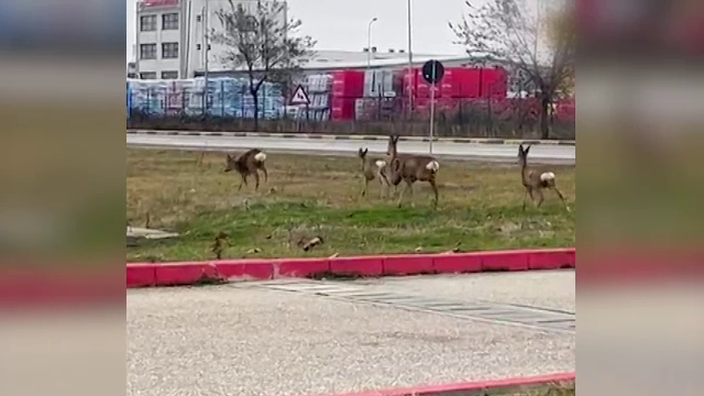 Un alt bărbat le-a surprins cum pășteau în voie în același loc. Probabil, căprioarele au ajuns în oraș pentru că zilele de sărbătoare i-au ținut pe oameni în case, iar străzile au fost aproape pustii.