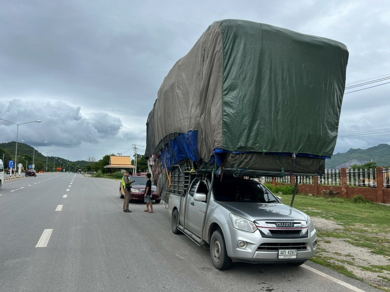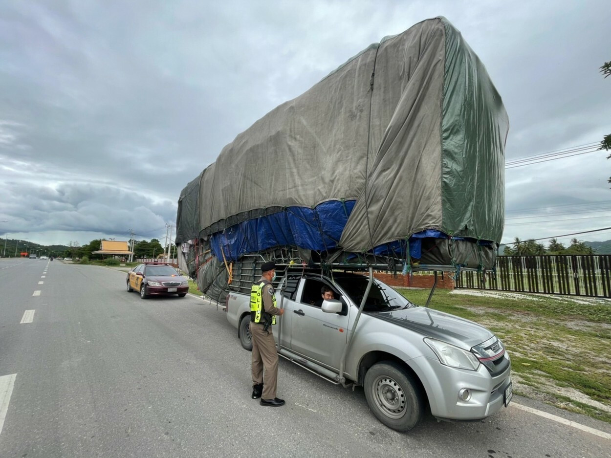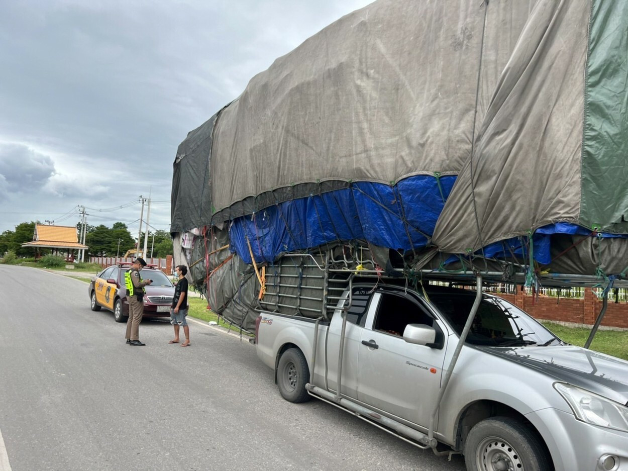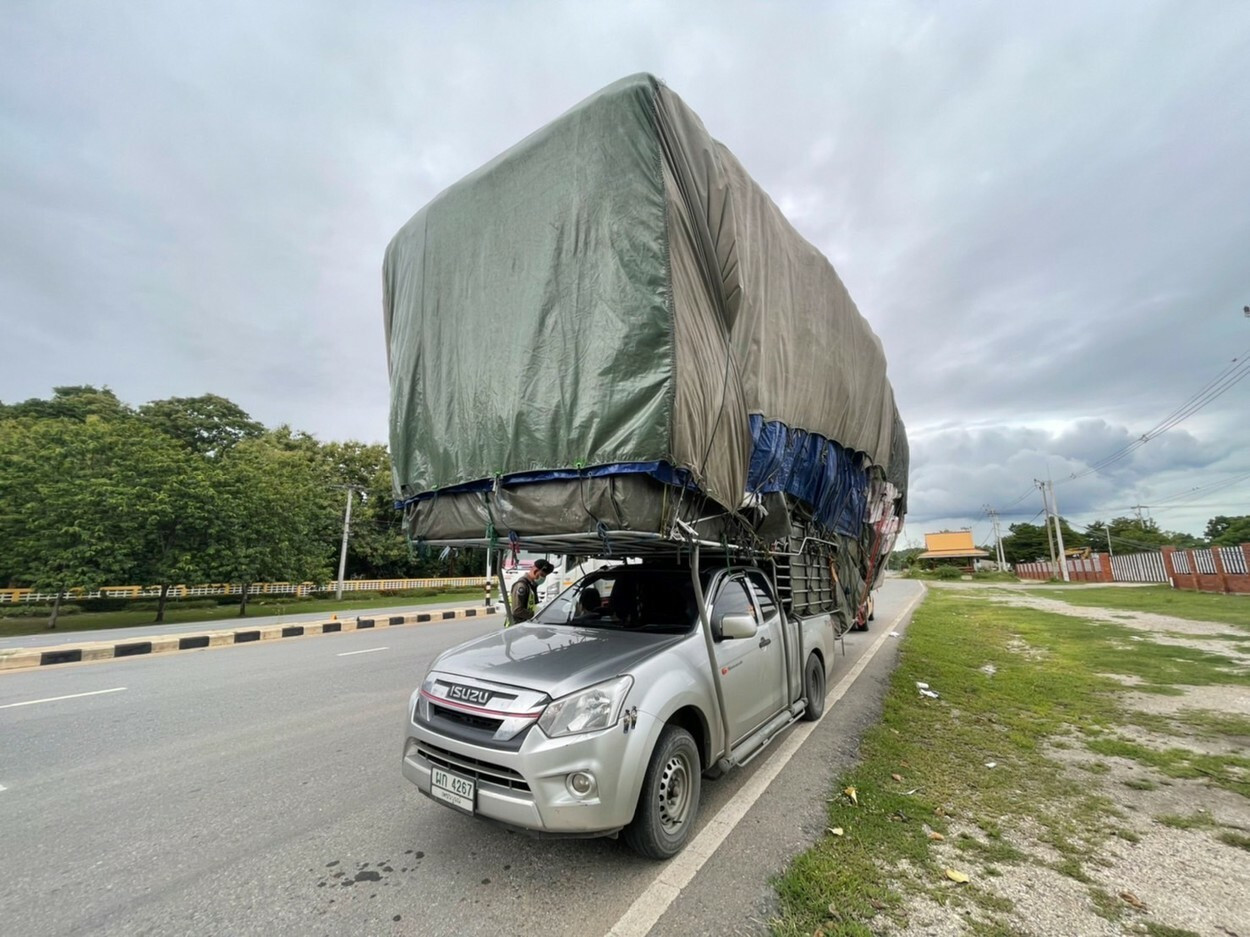 „Camioneta era încărcată atât de mult încât am fost îngrijorat că va fi un pericol pentru alți oameni. Am vorbit cu șoferul și l-am amendat”, a declarat sergentul Sarawut Rangagam.