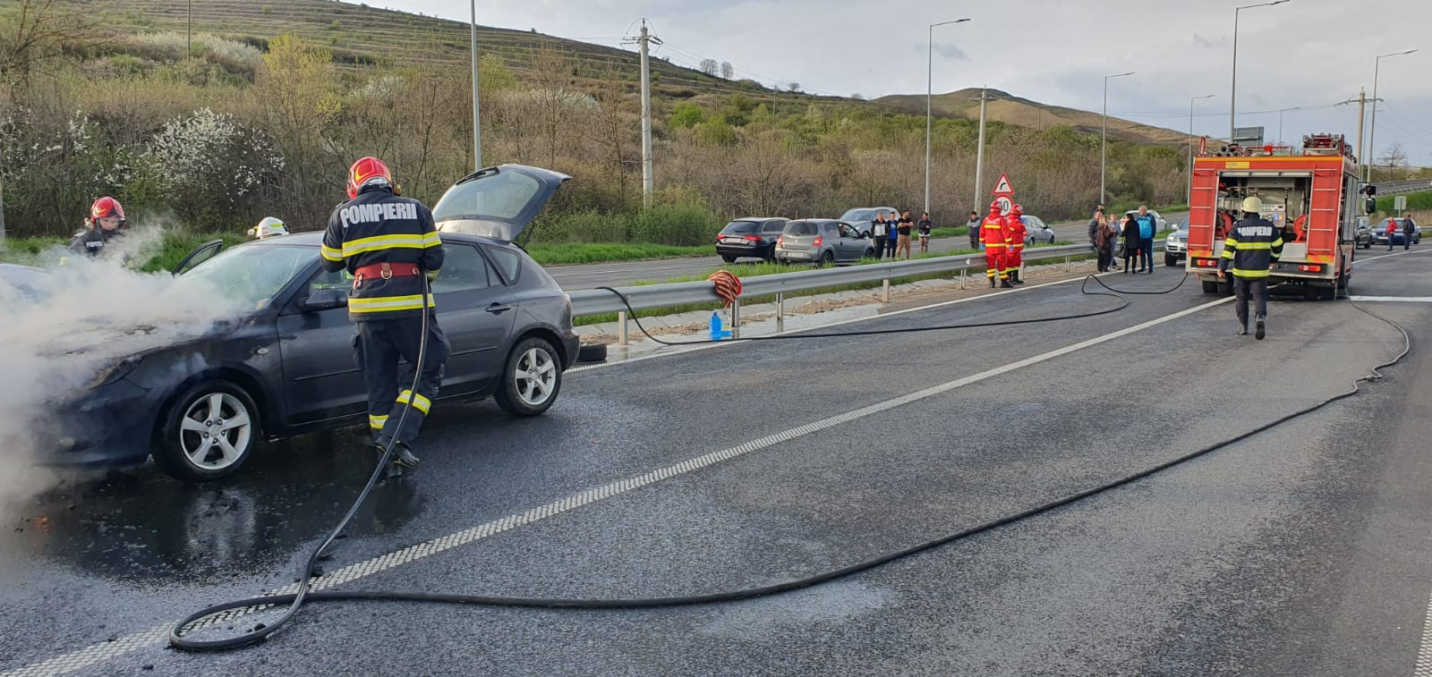 Detașamentul de pompieri Alba Iulia a intervenit pentru localizarea și stingerea incendiului, la ieșirea de pe autostrada A10.