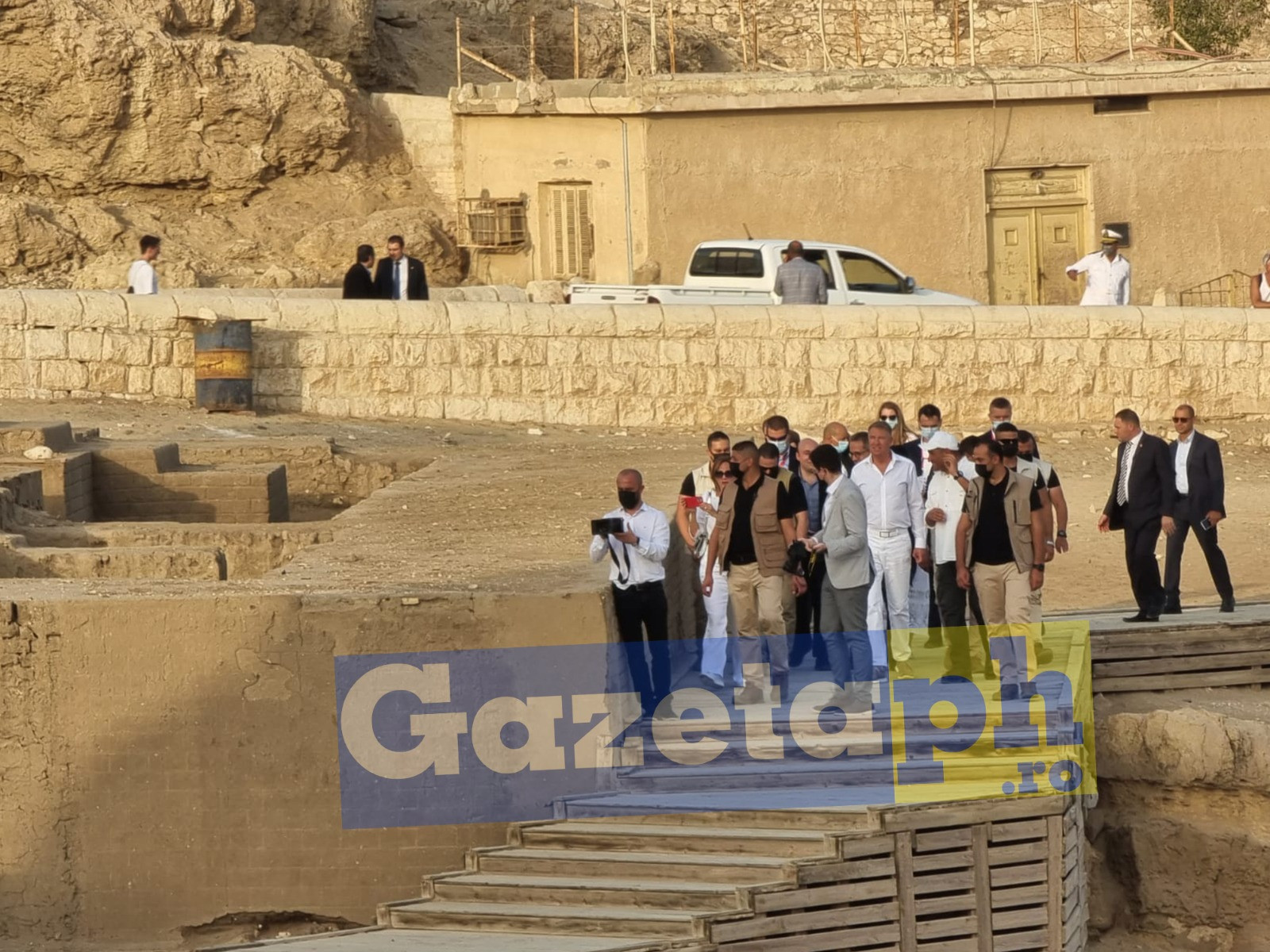 Un turist român l-a surprins pe președintele român alături de soția sa, Carmen, și întreaga delegație, la Cairo, în zona turistică a Piramidelor și Sfinxului. Imaginile au fost publicate de Gazeta de Prahova.