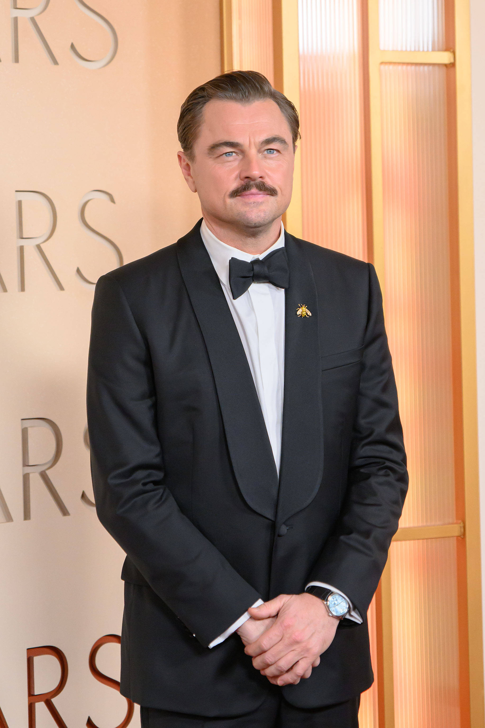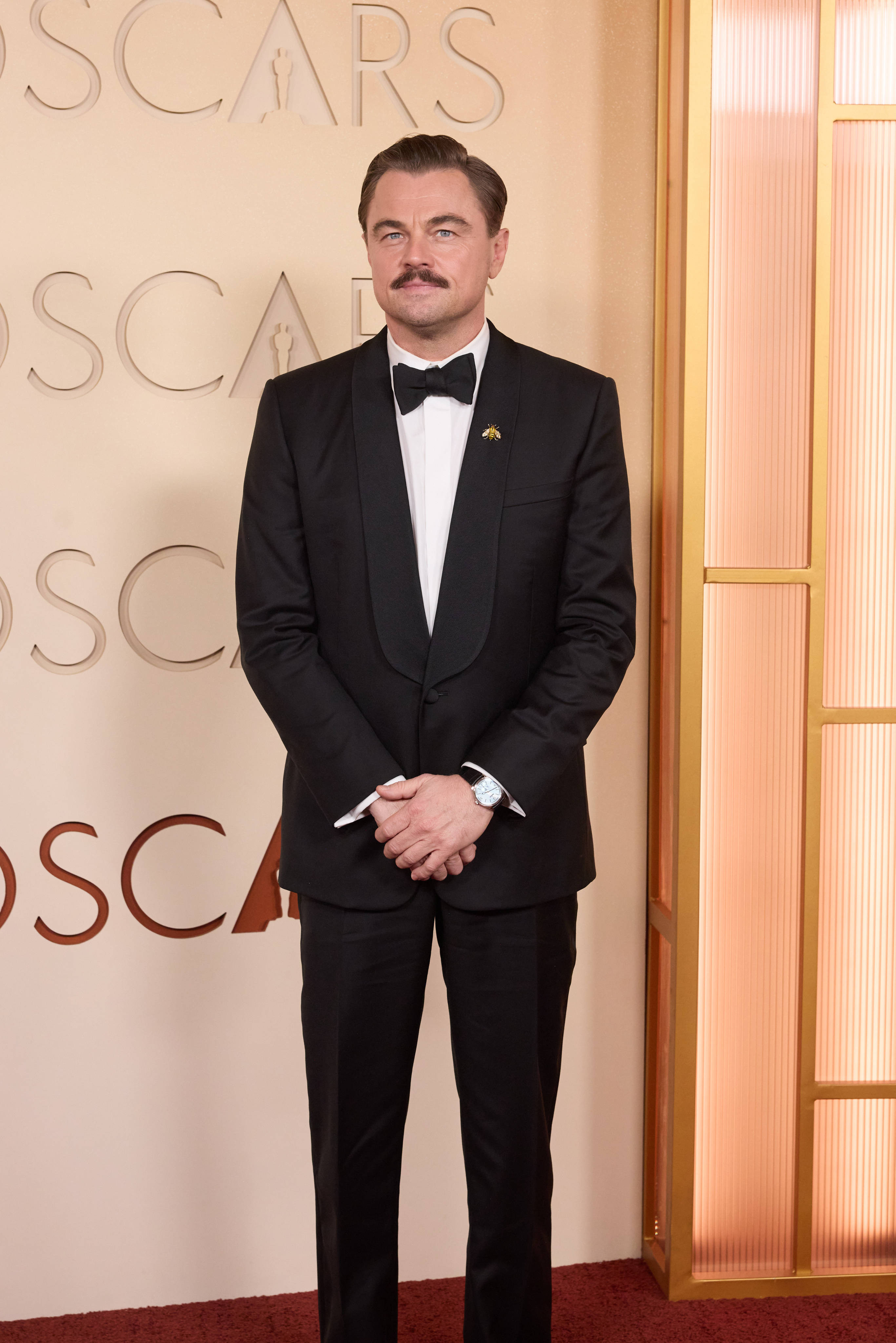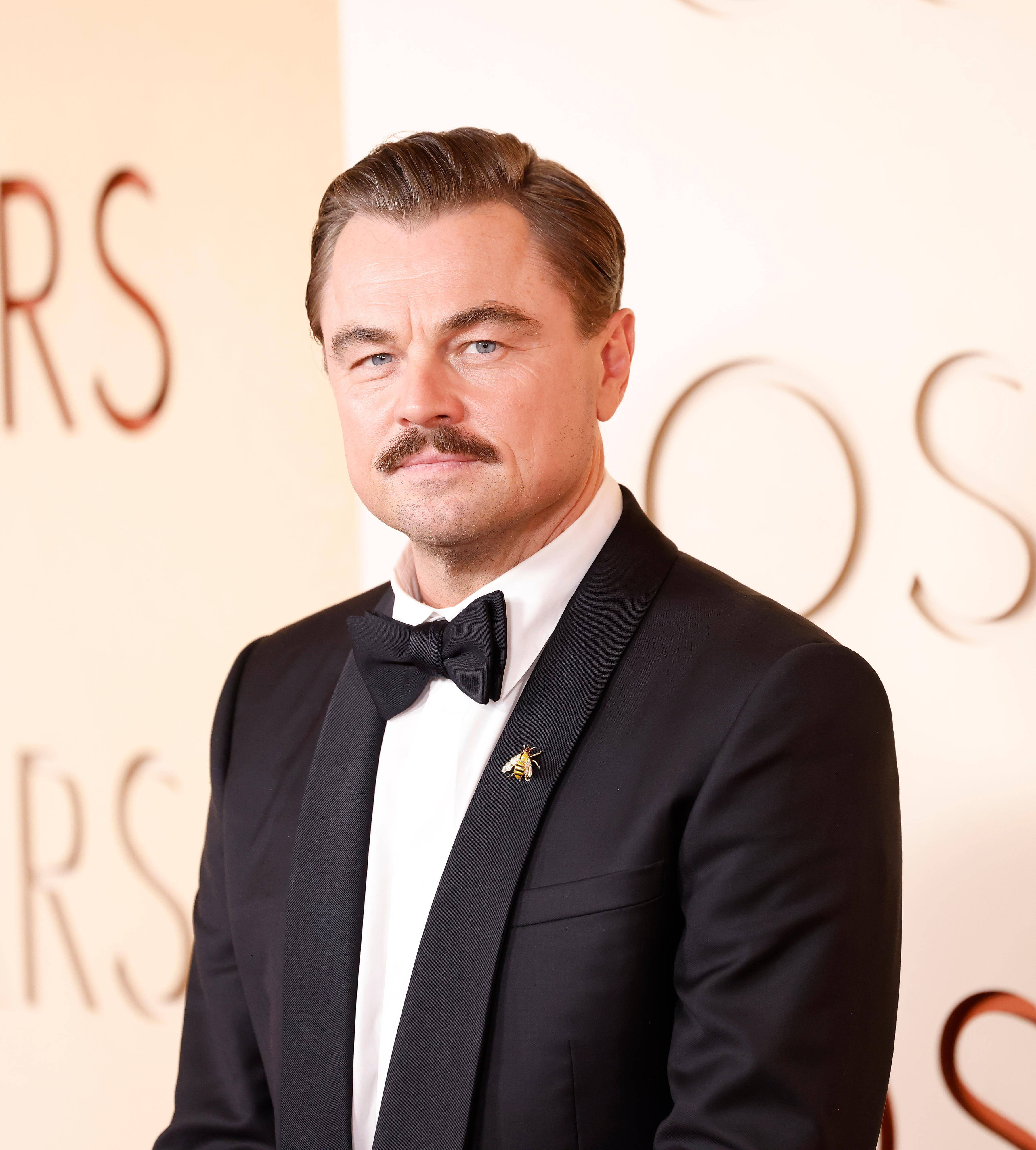 Actorul în vârstă de 51 de ani a păşit pe covorul roşu al premiilor Oscar 2026 într-un smoking negru, completat de o cămaşă albă. DiCaprio şi-a accesorizat ţinuta cu un ceas Rolex şi cu o broşă în formă de albină prinsă pe gulerul sacoului. Elementul care a atras cel mai mult atenţia a fost însă mustaţa.