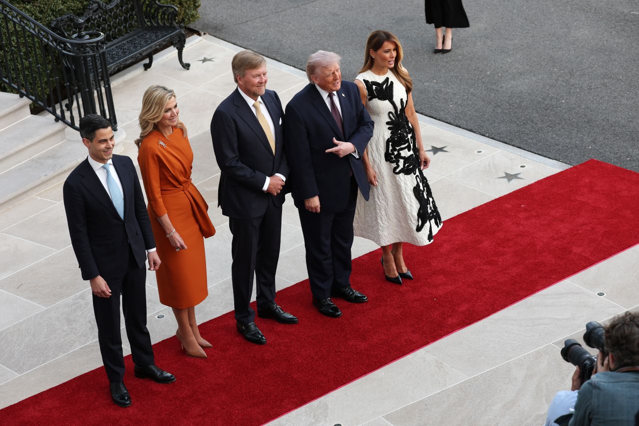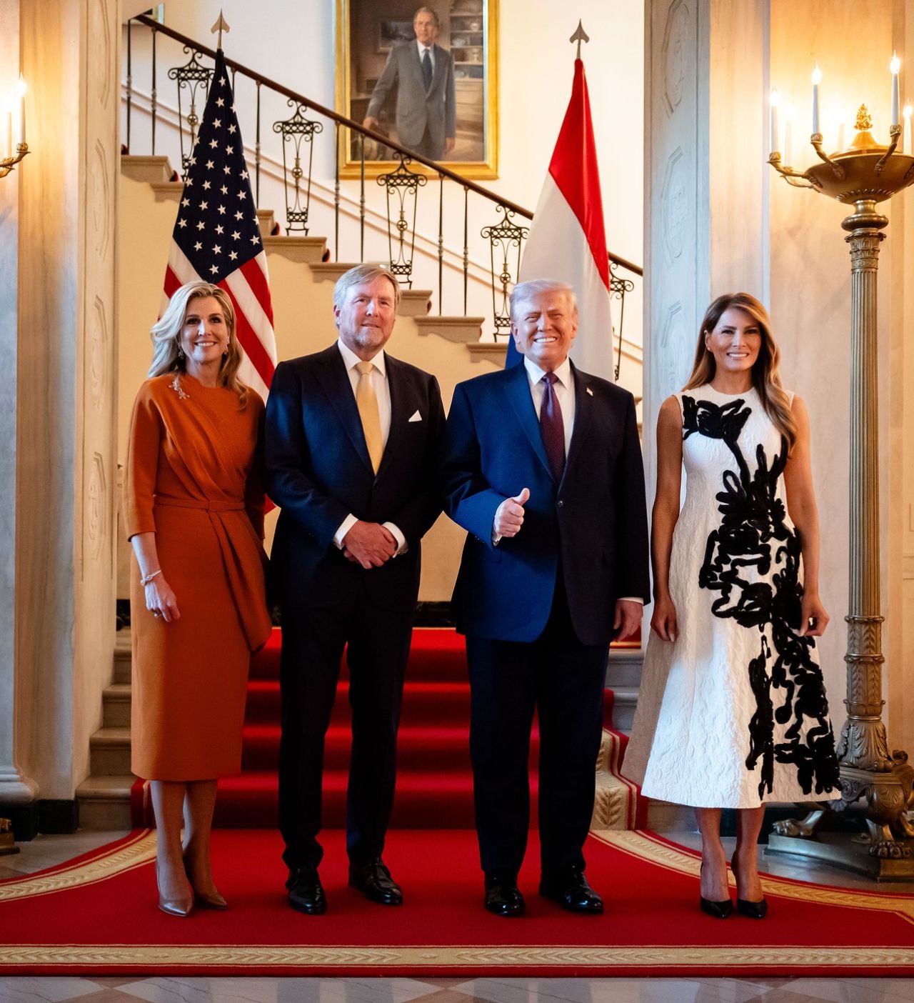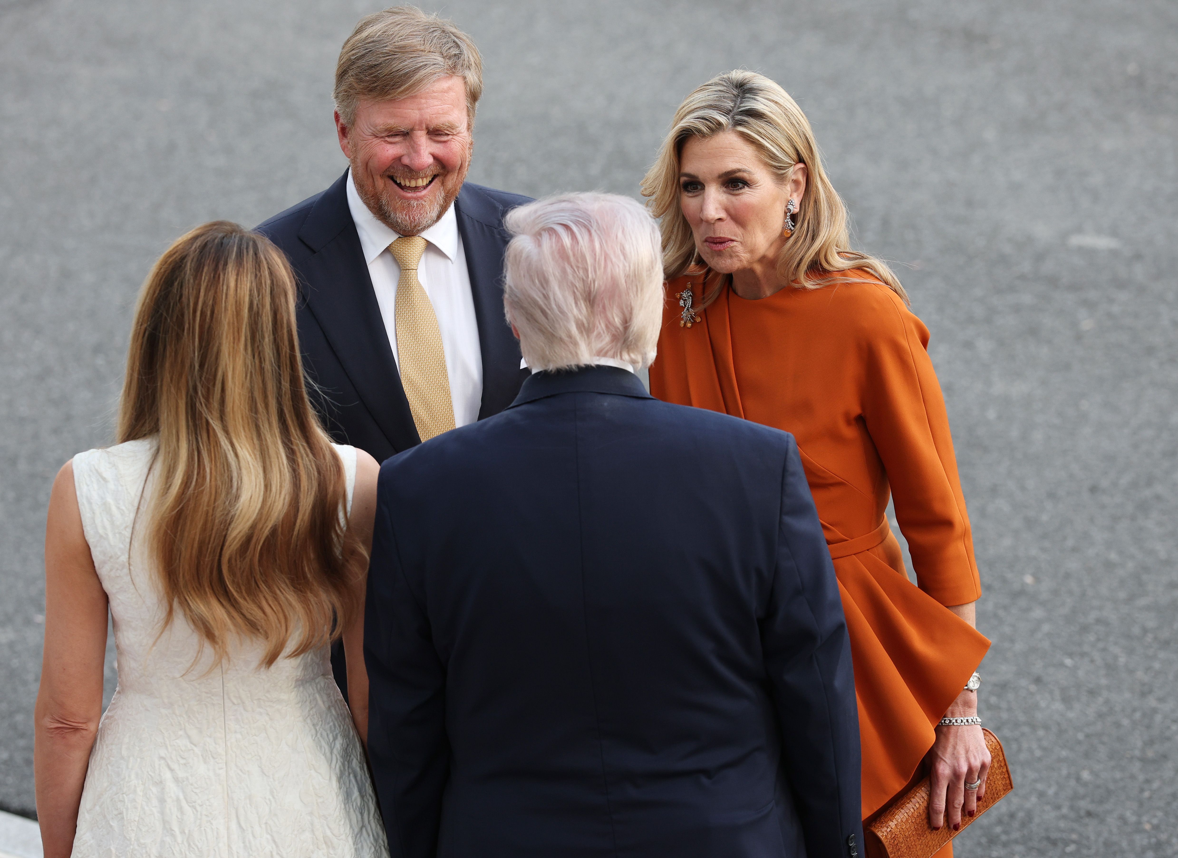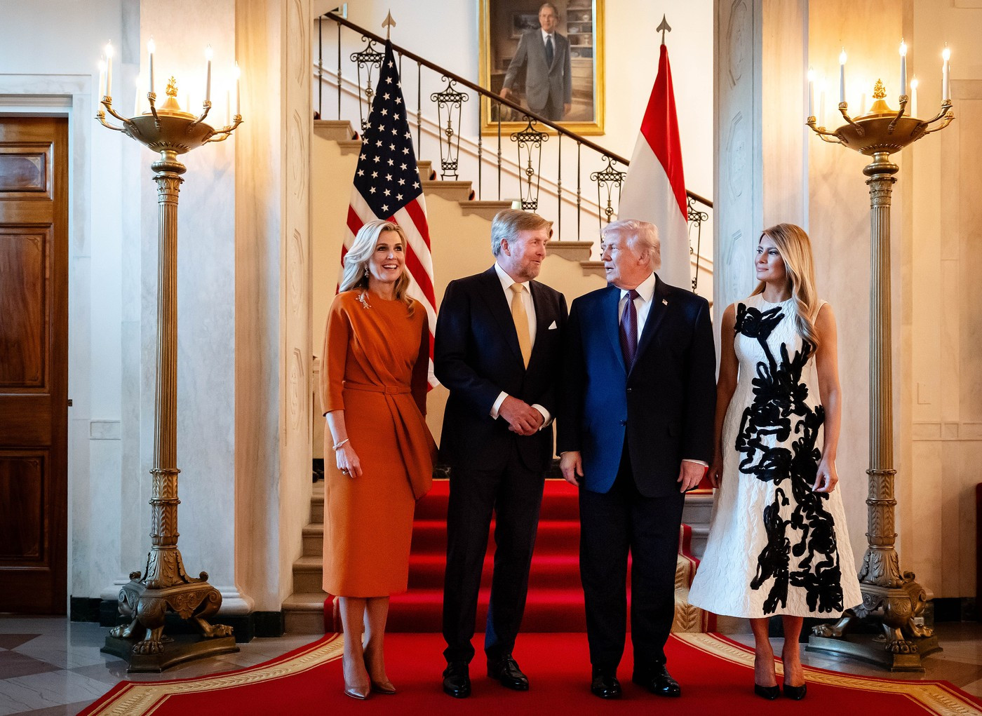 Președintele Donald Trump și prima doamnă Melania Trump i-au primit pe regele Willem-Alexander și regina Máxima ai Țărilor de Jos la Casa Albă, luni, 13 aprilie. Deși nu este vorba despre o vizită de stat, agenda vizitei de lucru a familiei regale olandeze în SUA a inclus o cină la Casa Albă, în Washington, D.C, potrivit People.