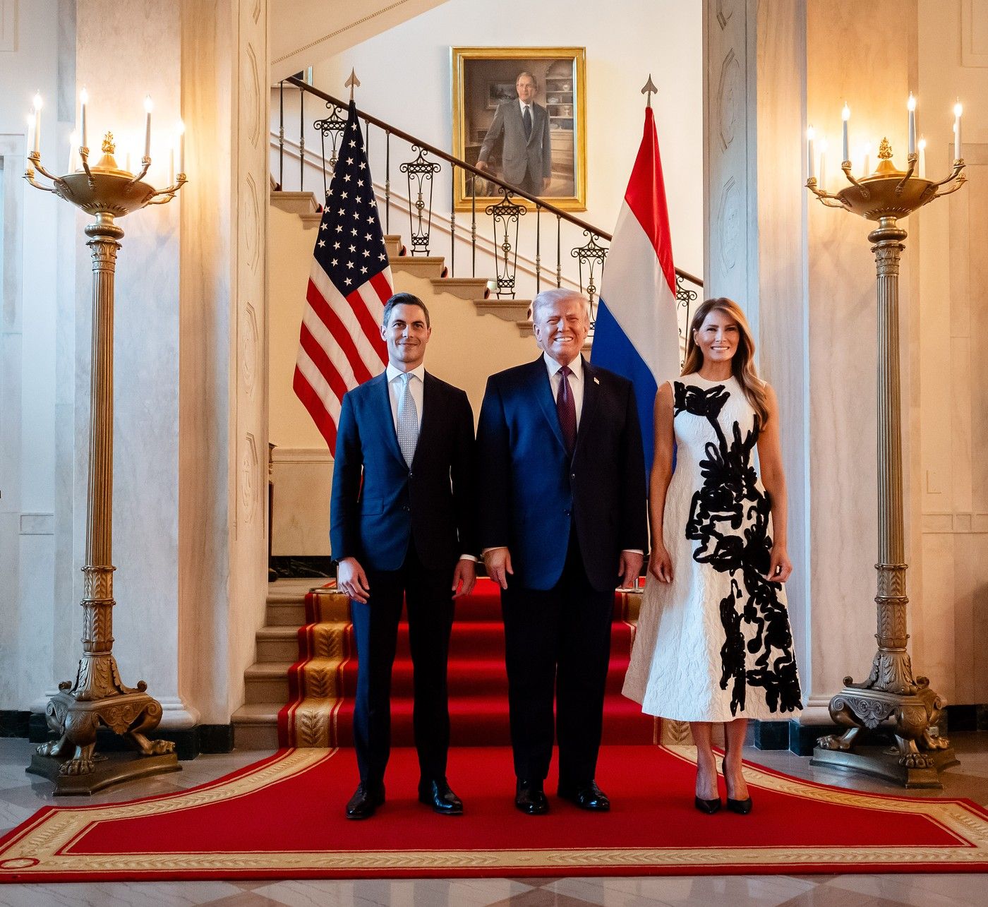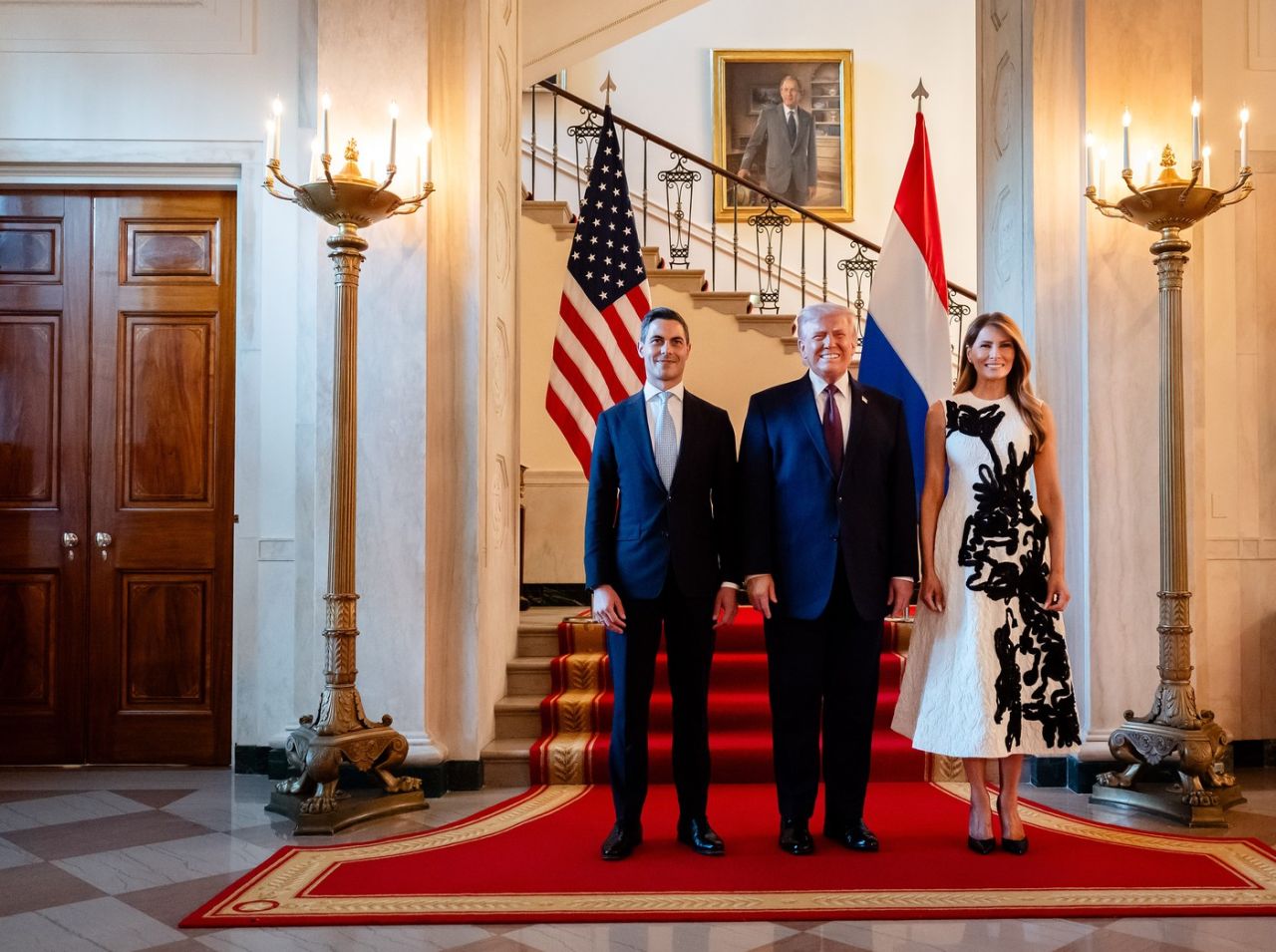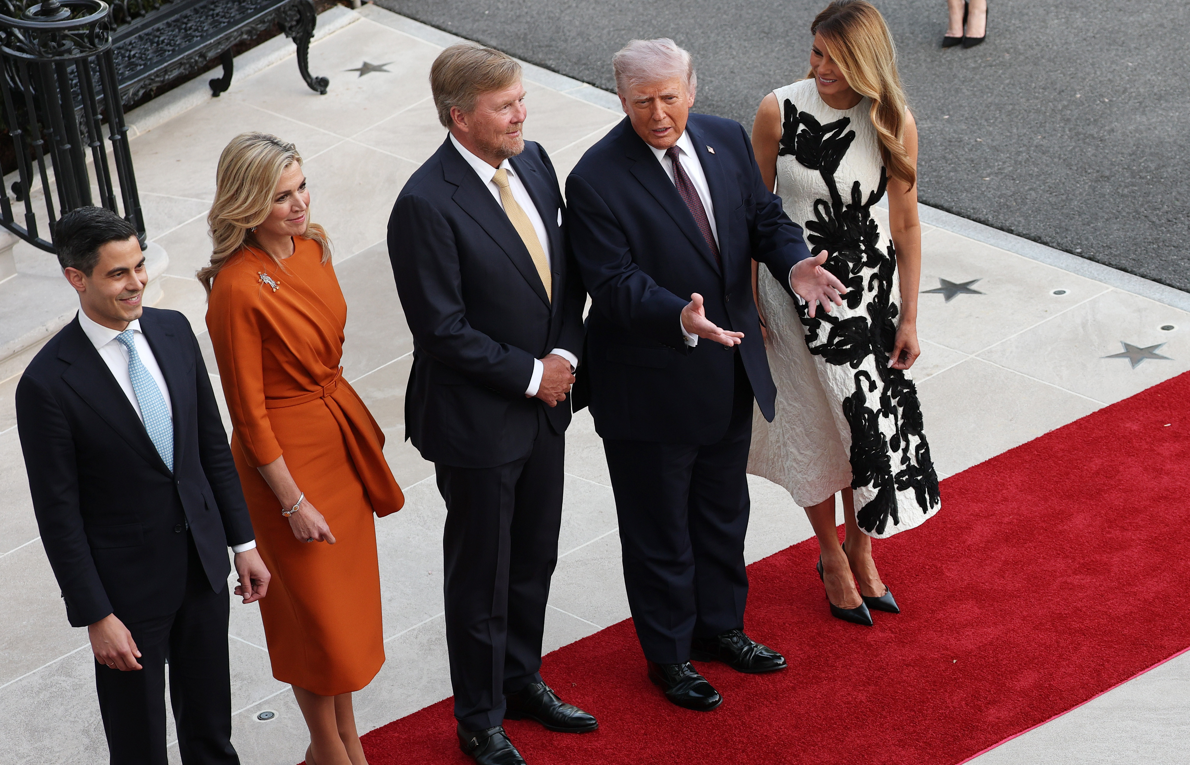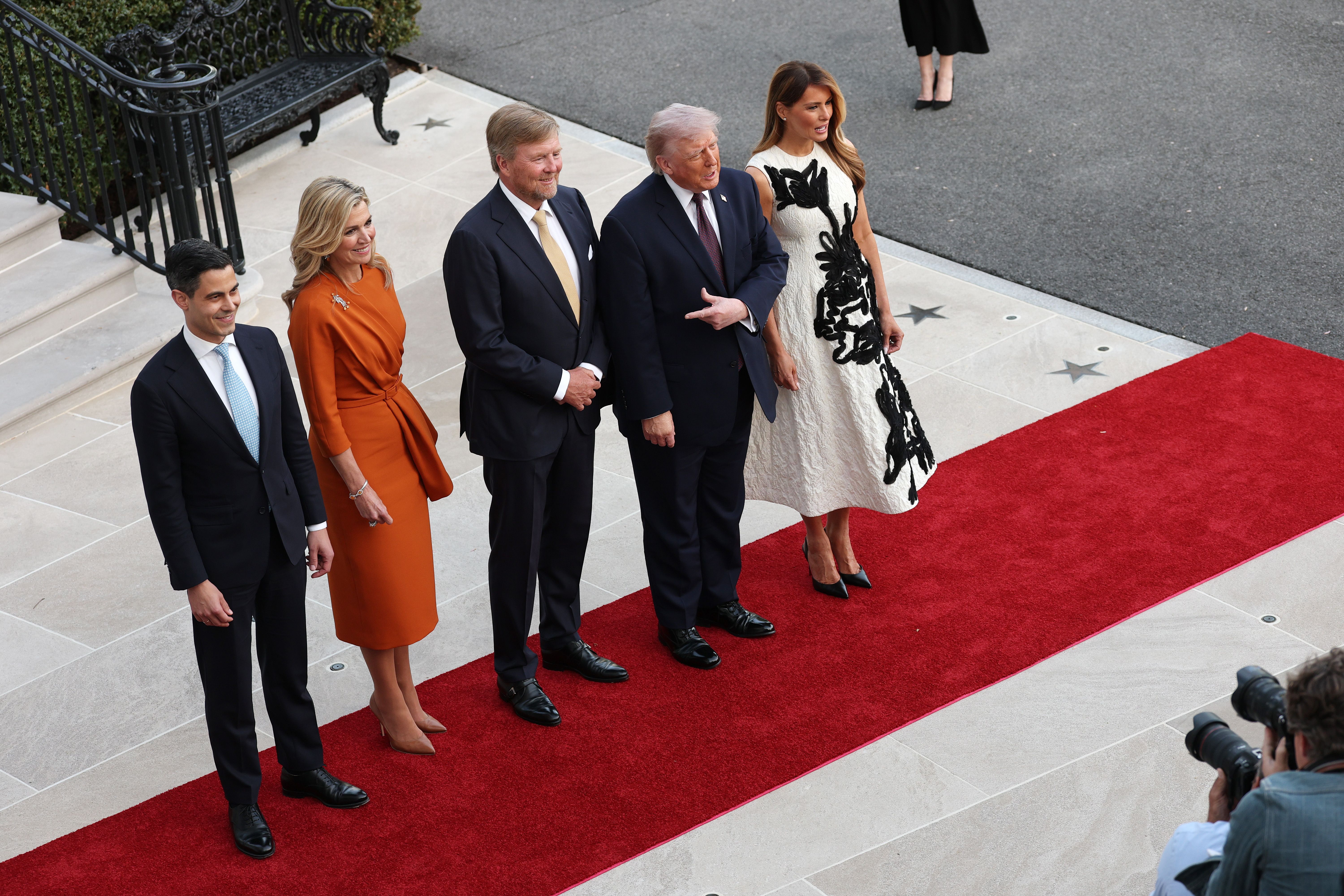 Președintele Donald Trump și prima doamnă Melania Trump i-au primit pe regele Willem-Alexander și regina Máxima ai Țărilor de Jos la Casa Albă, luni, 13 aprilie. Deși nu este vorba despre o vizită de stat, agenda vizitei de lucru a familiei regale olandeze în SUA a inclus o cină la Casa Albă, în Washington, D.C, potrivit People.